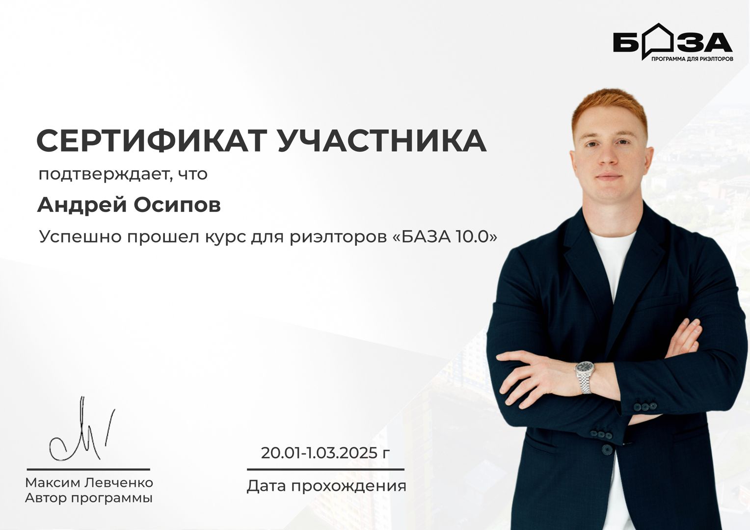 Хочу выразить благодарность риэлтору Андрею Осипову из агентства недвижимости "Ключ" за помощь в продаже участка. Андрей проявил себя как настоящий профессионал: оперативно решал все вопросы, в том числе возникающие внезапно, терпеливо объяснял каждый этап сделки, сопровождал на всех этапах, был на связи в любое время дня и ночи, а главное — сделка прошла успешно, безопасно и без каких-либо...