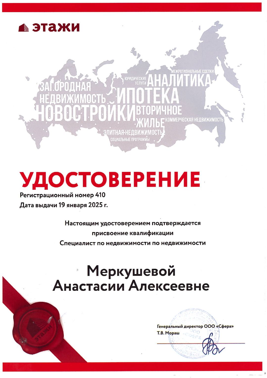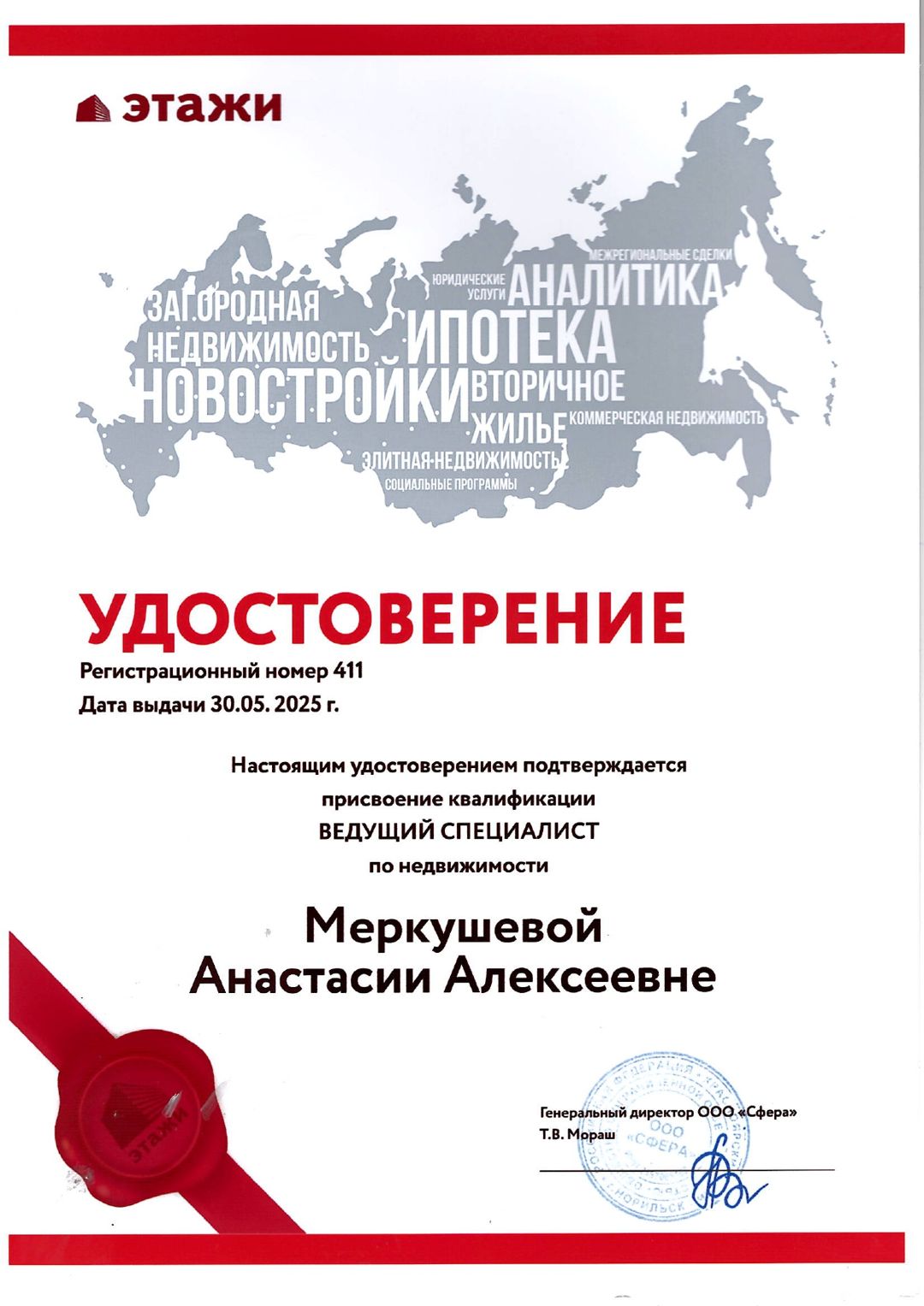 Огромное спасибо Анастасии М. за проведении сделки. Сделка была удаленная, прошла в сжатые сроки. Всегда на связи. Компания Этажи 👍