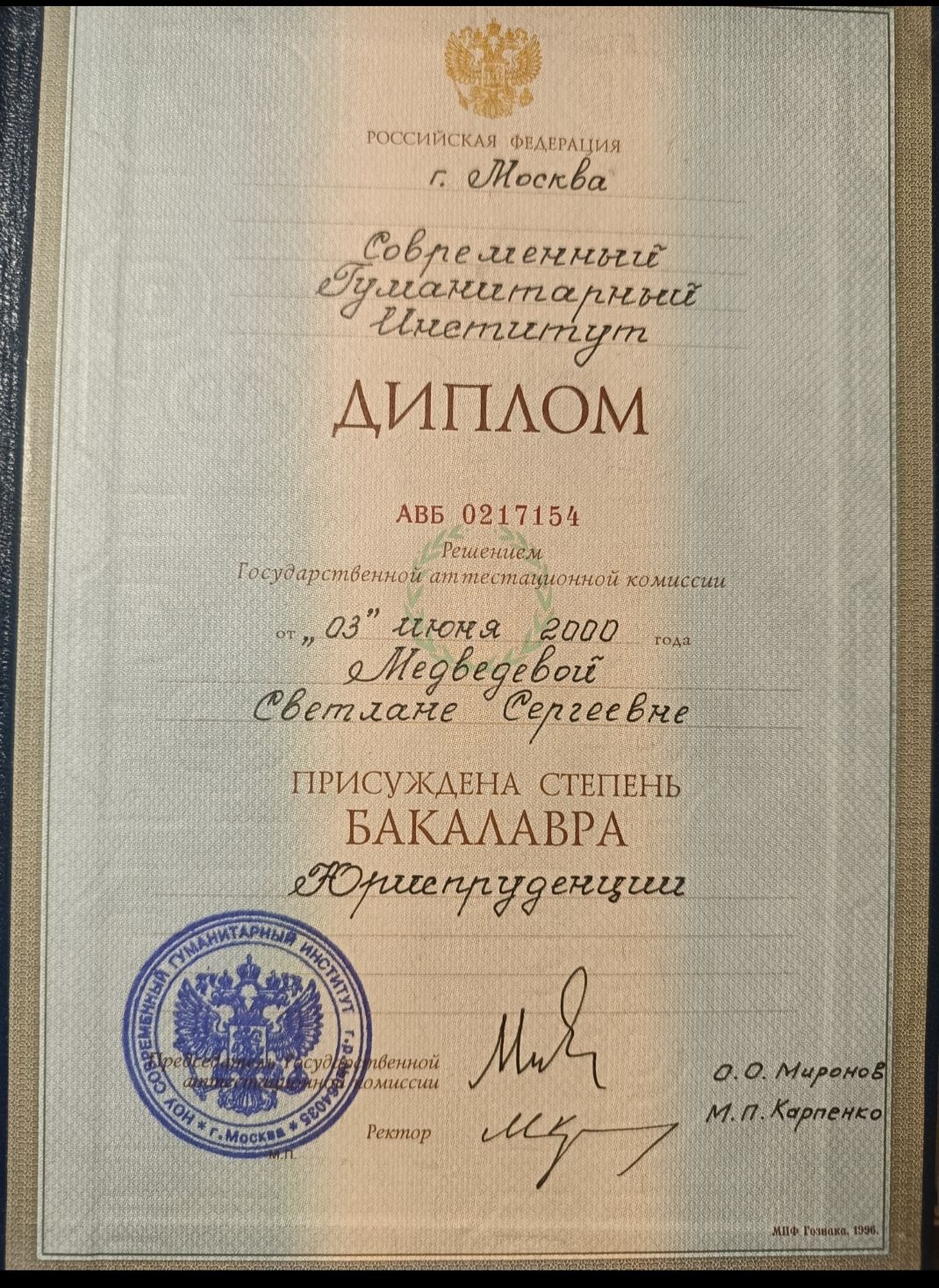 Хочу поблагодарить за добросовестную и оперативную работу риэлтора - Медведеву Светлану Сергеевну. Специалист обеспечил полное сопровождение сделки,проявляла эмпатию,снабжала необходимой информацией своевременно и качественно. Я бы рекомендовала ее своим друзьям и родственникам!