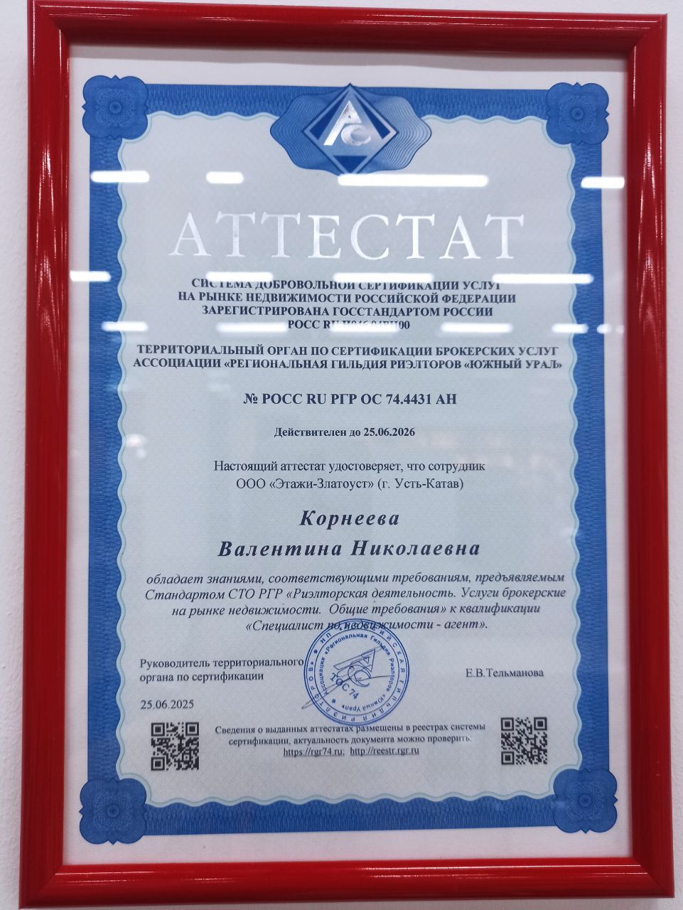 РАБОТАЮ В КОМПАНИИ ЭТАЖИ С СЕНТЯБРЯ 2024Г. ЯВЛЯЮСЬ РУКОВОДИТЕЛЕМ ФИЛИАЛА В ГОРОДЕ УСТЬ-КАТАВЕ. ПРОШЛА СЕРТИФИКАЦИЮ ПО ДАННОМУ НАПРАВЛЕНИЮ.ЯВЛЯЮСЬ НАСТАВНИКОМ И ИМЕЮ СЕРТИФИКАТ НАСТАВНИКА. КАК ЛУЧШИЙ РИЕЛТОР БЫЛА НАГРАЖДЕНА ПОЕЗДКОЙ НА ФОРУМ РИЕЛТОРОВ В САНК-ПЕТЕРБУРГ В СЕНТЯБРЕ 2025 ГОДА. ИМЕЮ СЕРТИФИКАТЫ ПО ПРОХОЖДЕНИЮ ОБУЧЕНИЯ В РАЗЛИЧНЫХ НАПРАВЛЕНИЯХ.