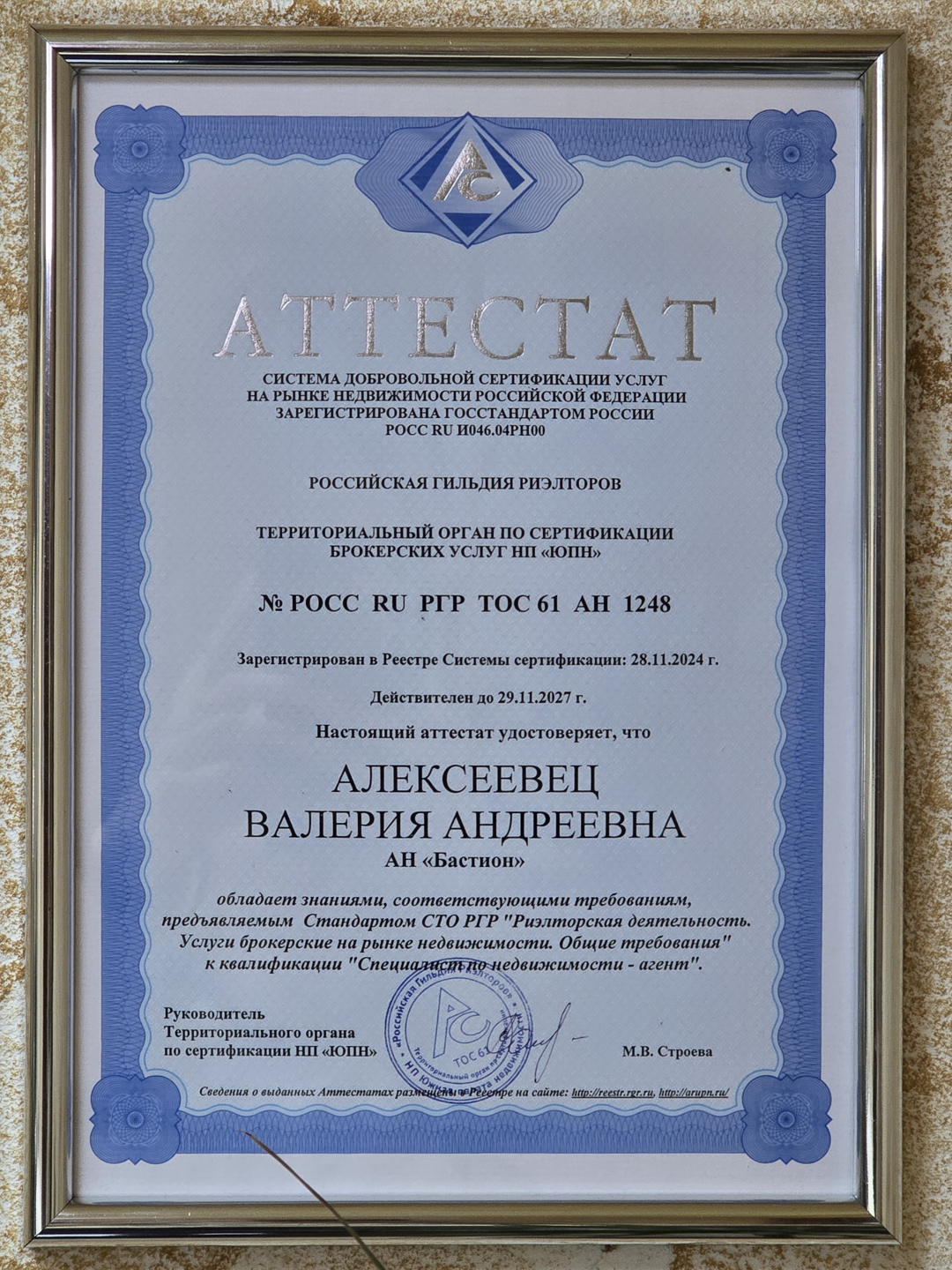 Агентство недвижимости «Бастион» является членами Российской Гильдии Риэлторв и Южной палаты недвижимости, что подтверждает наш профессионализм и высокий уровень сервиса. Наша команда опытных риэлторов готова помочь вам с выбором жилья или коммерческой недвижимости, отвечая на все ваши вопросы и уделяя внимание каждой детали. Доверьтесь нам и мы подберем идеальную недвижимость в России.