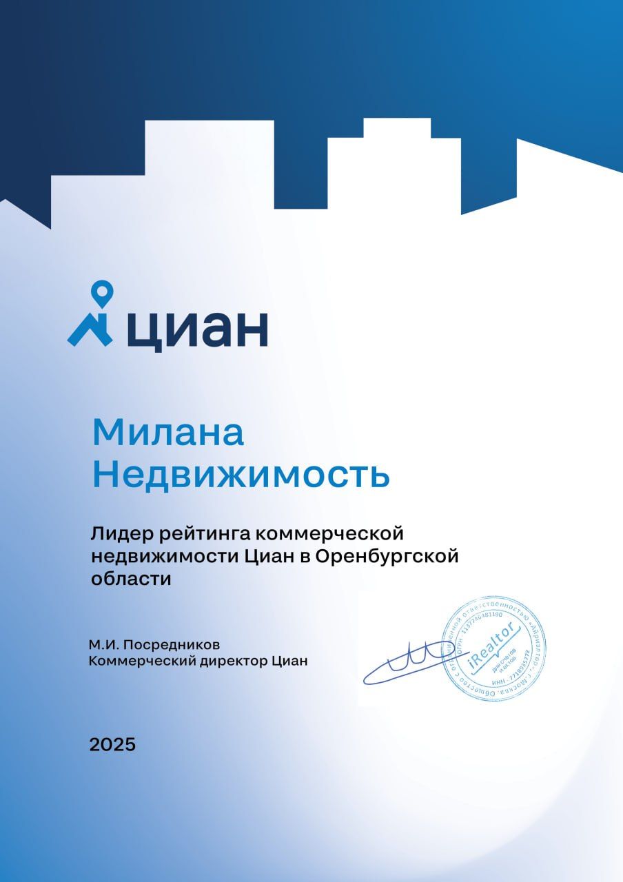 Я аттестованный агент по недвижимости и работаю в компании «Милана Недвижимость» — это агентство №1 в Оренбургской области! БРЕНД ГОДА 2024! Более 3 000 предложений от собственников и застройщиков в любой точке России и мира! Десятки тысяч довольных клиентов. Буду рад помочь Вам в вопросах недвижимости!