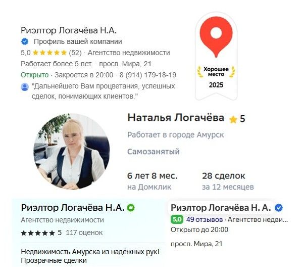 Если вам нужно найти агента по недвижимости в городе Амурск для продажи или покупки квартиры, воспользуйтесь поиском на Домклик. Ориентируйтесь на опыт работы агента, количество совершённых сделок и отзывы.