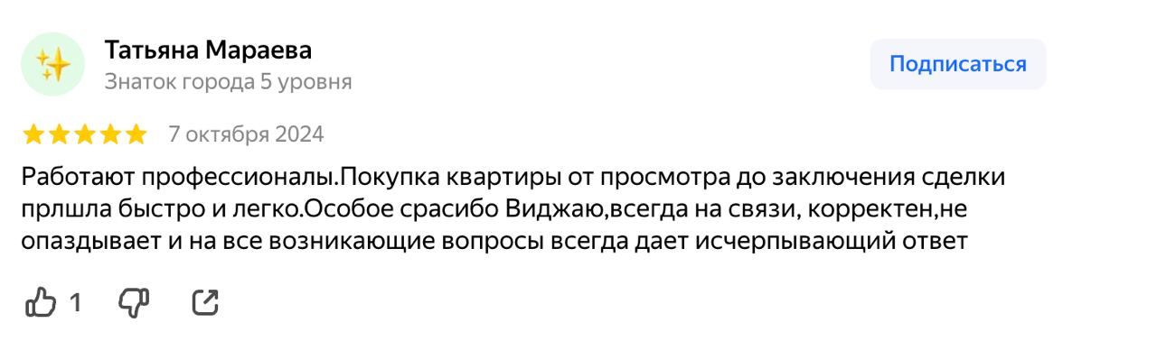 Покупали квартиру. Виджай сам позвонил, рассказал про акцию, всё подробно объяснил и помог выбрать вариант. Честно говоря, я немного переживал, так как покупка первая, но Виджай всё организовал быстро и грамотно — от подачи заявки до самой сделки. В итоге остались очень довольны! Рекомендую как ответственного и внимательного специалиста.