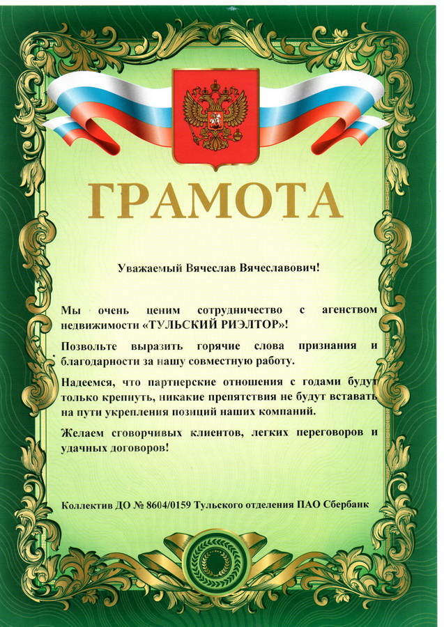 Хотим выразить благодарность всей команде агентства недвижимости "Тульский риэлтор",обращались 2й раз и как всегда не подвели-МОЛОДЦЫ,всем Рекомендуем!!!