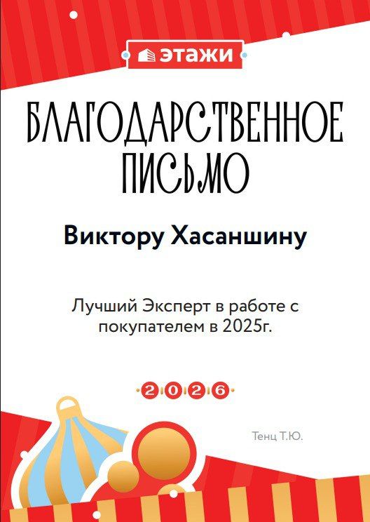 Виктор ХасаншинРиелтор ответил 9 февраля 2026Алексей! Спасибо! Рад был помочь с приобретением такой выгодной инвестиции, как покупка квартиры в новстройке!