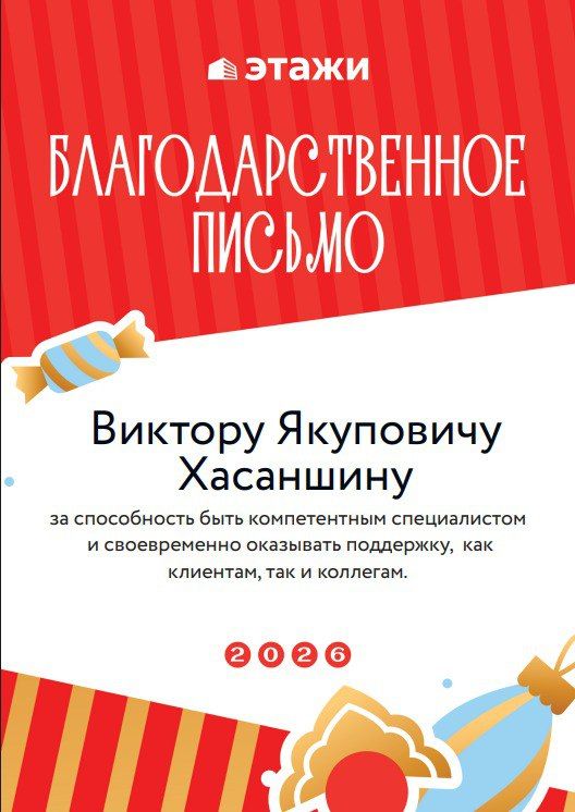 Виктор ХасаншинРиелтор ответил 29 января 2026Спасибо большое за теплые слова! Это вдохновляет! Успехов и процветания Вам! До новых встреч!