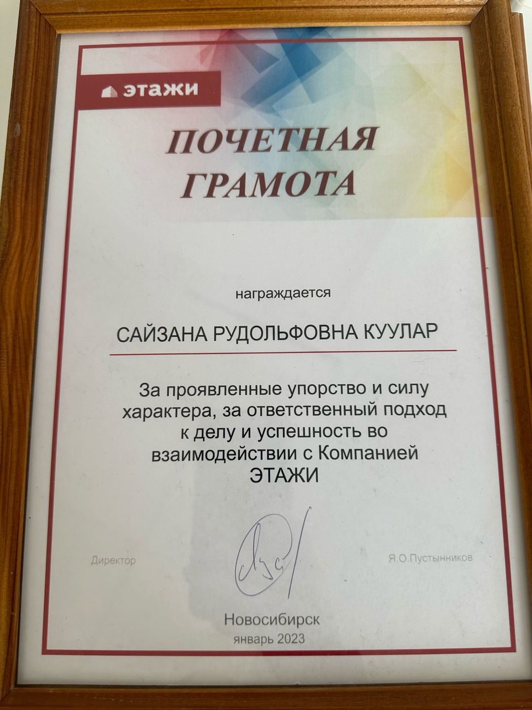 Хочу поблагодарить Сайзанну Рудольфовну за профессионализм, ответственность, качественный и тактичный подход. Все вопросы решались оперативно. Сделка прошла успешно
