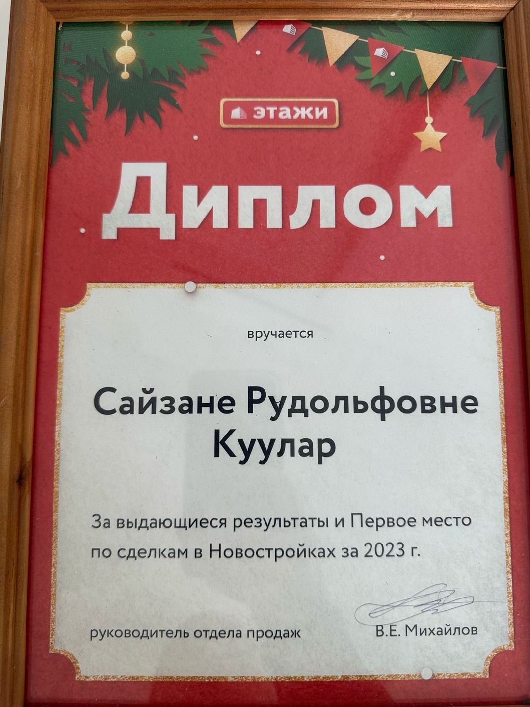 Отличный брокер! Рекомендую всем!Обратились к Сайзане Рудольфовне за помощью в поиске квартиры по ипотеке. С первого звонка всё прошло на ура: подробно объяснила все этапы, подобрала варианты под наши пожелания и бюджет, собрала документы без лишней беготни. Благодаря ее профессионализму мы быстро нашли уютную квартиру и оформили ипотеку на выгодных условиях. Спасибо большое!