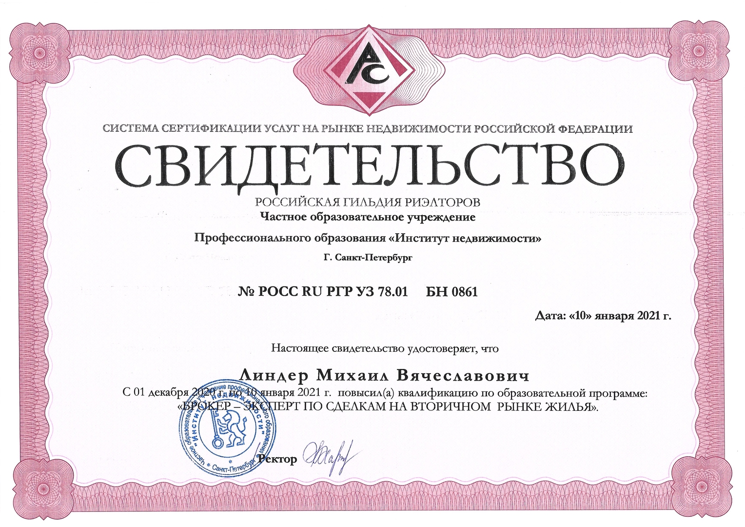 Продажа жилой и коммерческой недвижимости в короткие сроки на максимально выгодных для вас условиях - моя ежедневная задача. Дипломы международного стандарта, более 10 лет практики и 300 проданных объектов подтверждают мою экспертность. Моя профессиональная деятельность застрахована и сертифицирована Ассоциацией риэлторов Санкт-Петербурга