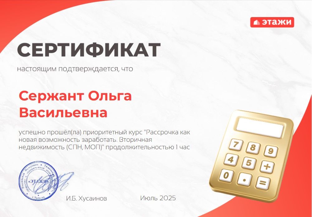 «Этажи» — агентство недвижимости №1 по версии ВТБ и Сбербанка. Поможем купить, продать, арендовать новостройку, вторичку, загородную и коммерческую недвижимость. С нами легко и безопасно проводить сделки • Все услуги в одном месте Вместе мы подберем подходящий вариант, отправим заявку на ипотеку и оформим ее со скидкой до 1% и зарегистрируем сделку в МФЦ. А онлайн-сделка в личном кабинете на...