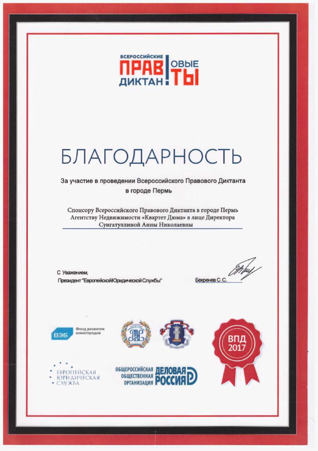 Профессионально совершена сделка по продаже квартиры в Березниках и покупке объекта в г. Перми. Сопровождение под ключ с составлением декларации для налоговой и подписанием Актов приемки-передачи объекта. Рекомендую!