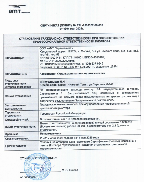 Не первый раз обращаюсь к риелтору Курдицкой Марине Николаевне, также рекомендую своим знакомым обращаться к ней и компании самолёт+, всё сделки будут выполнены быстро, качественно,юридически грамотно, а также сопровождение риелтором вас в банке, МФЦ и других организациях