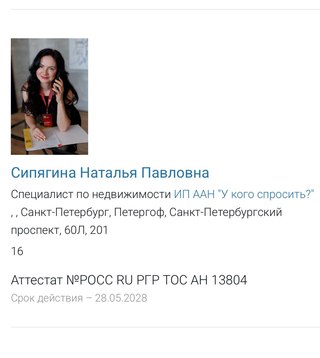 Наталья СипягинаРиелтор ответил 8 апреля 2026Спасибо за рекомендации! Отзыв это очень важно в наше время! Очень приятно было работать с Вами Дмитрий! Отзыв прочитала сразу)), а ответ не успела отправить.