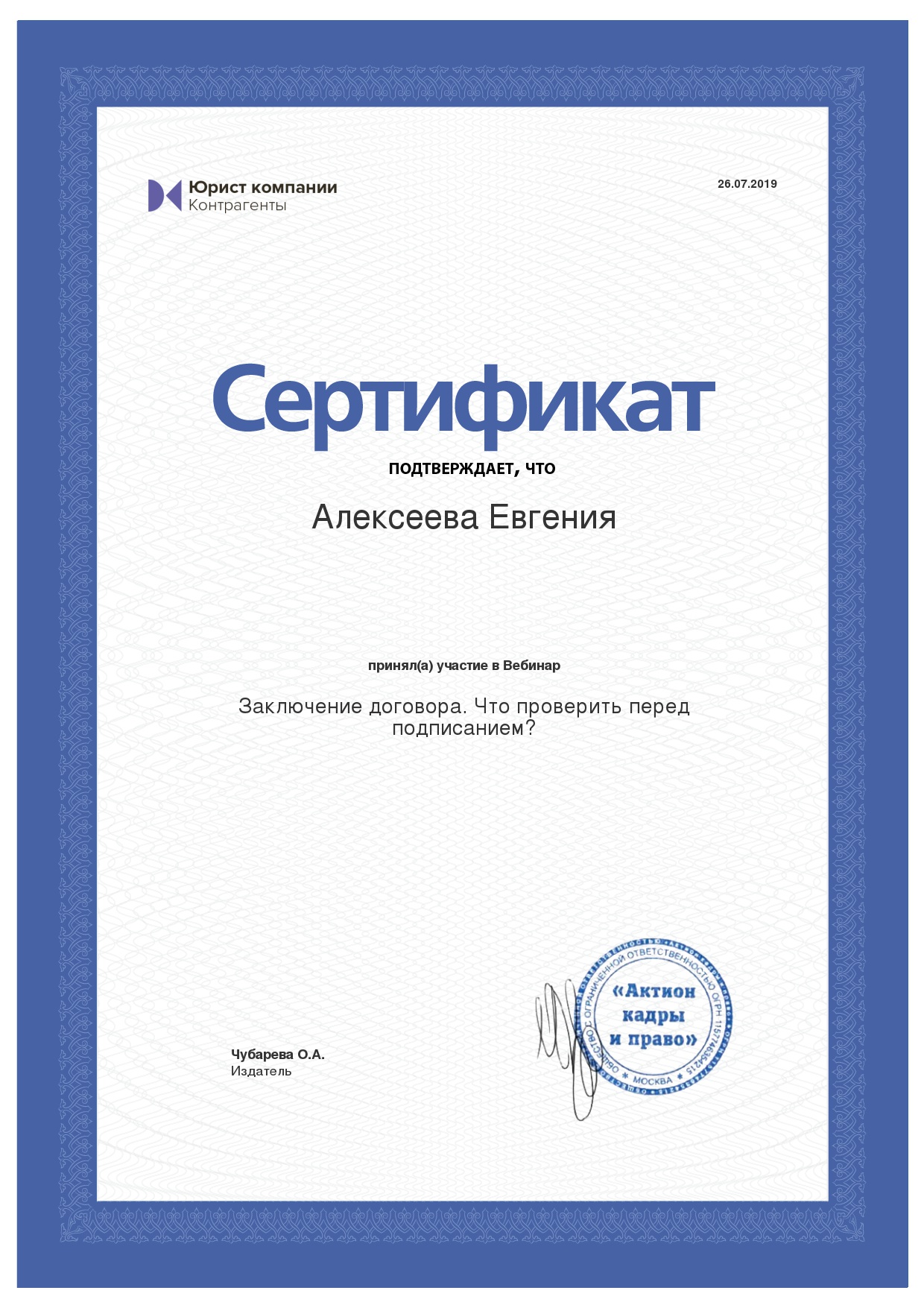 - заключение договора