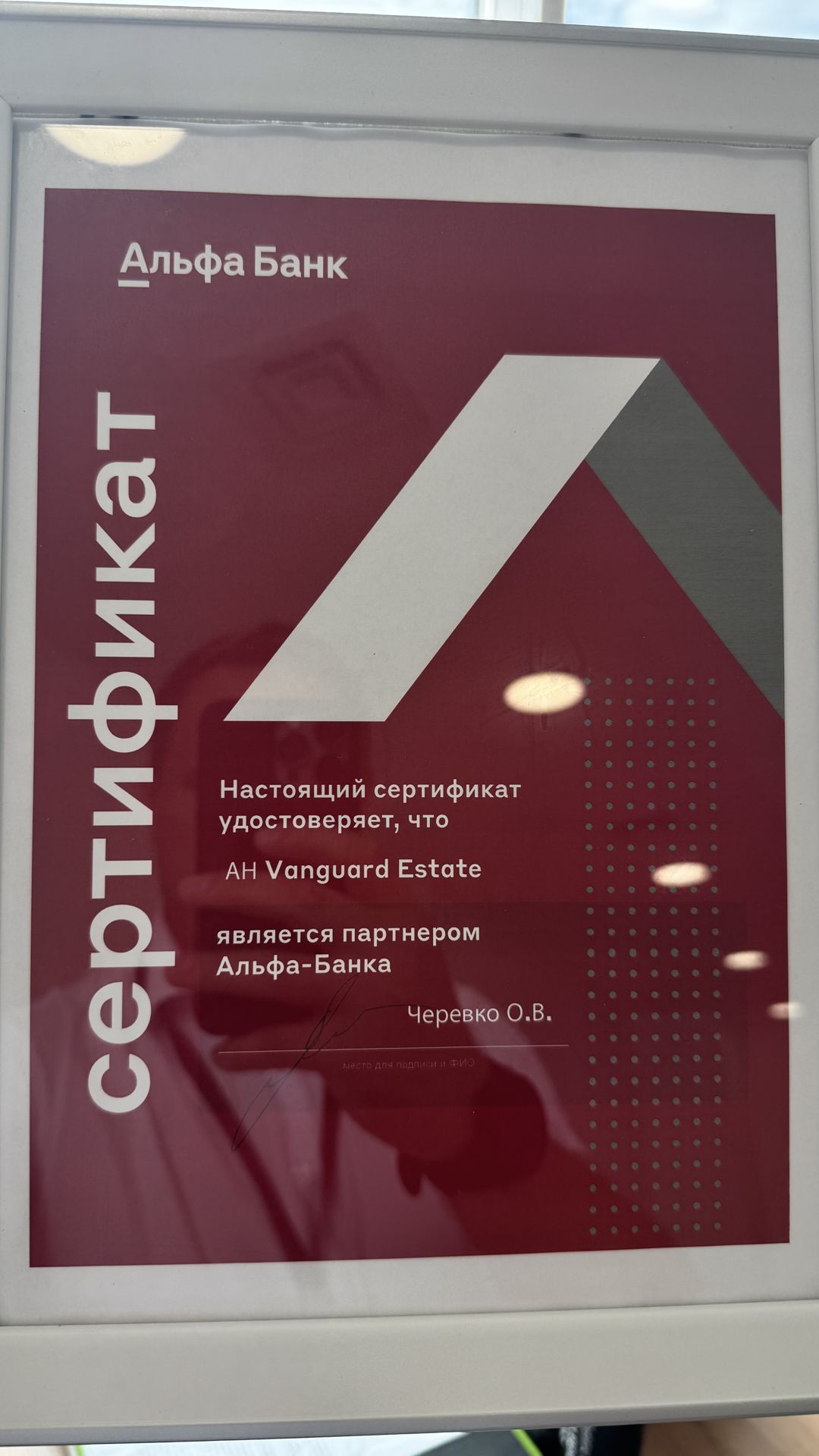 Являюсь руководителем и основателем АН "Vanguard Estate". У нас работают лучшие эксперты рынка вторичного жилья и новостроек! Наш девиз: Профессионализм - рождает доверие! Будем рады сотрудничать!