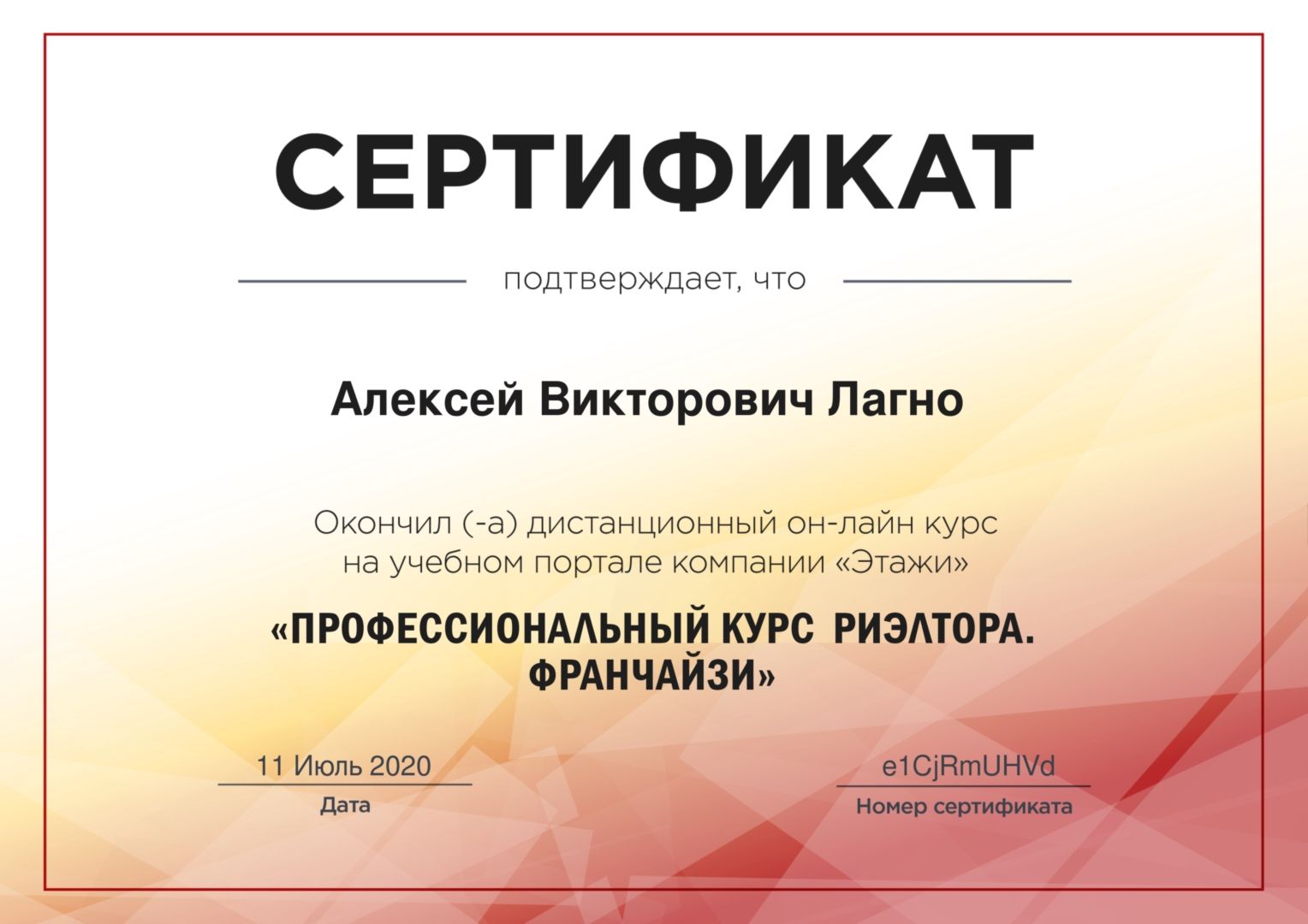 Хочется выразить слова благодарности Лагно Алексею Викторовичу. За помощь в ведении и сопровождении сделки по продаже и покупки недвижимости. Огромное спасибо за столь пристальное внимание, ответственность, чуткий подход к клиентам, бдительность и уважительное отношение. Это компетентный и очень грамотный специалист в своей сфере. Вы лучший!!! Всем, всем, всем буду рекомендовать Алексея...