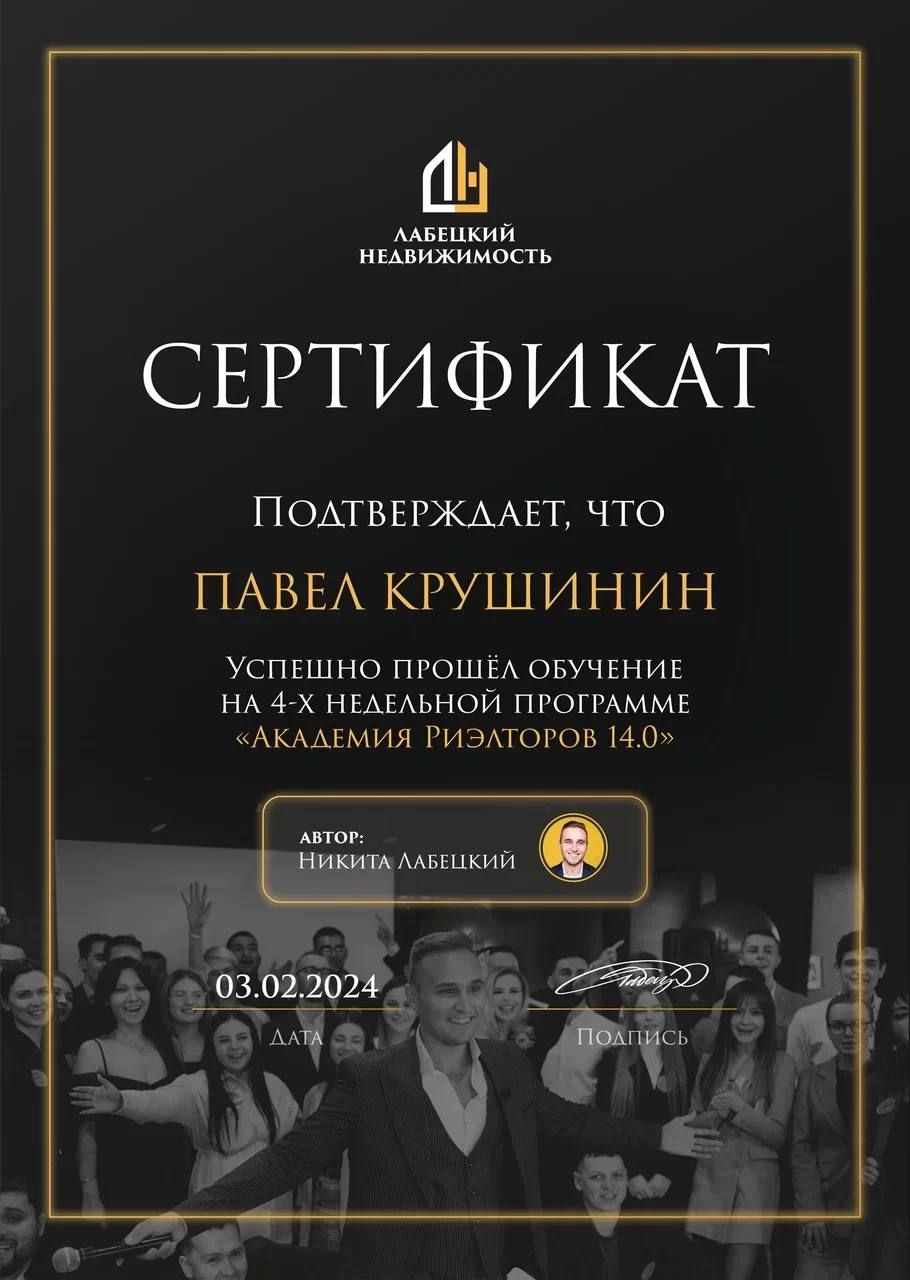 Хочу выразить благодарность риэлтору Павлу Крушинину и всей команде агенства "Этажи"за помощь в продаже и покупке квартиры.Вы не просто делаете свою работу,а действительно стараетесь помочь. Особая благодарность Павлу Крушинину,он не только квалифицированный специалист,но ещё и добросовестный ,понимающий отзывчивый человек. Буду обращаться в Ваше агенство и рекомендовать его своим знакомым.