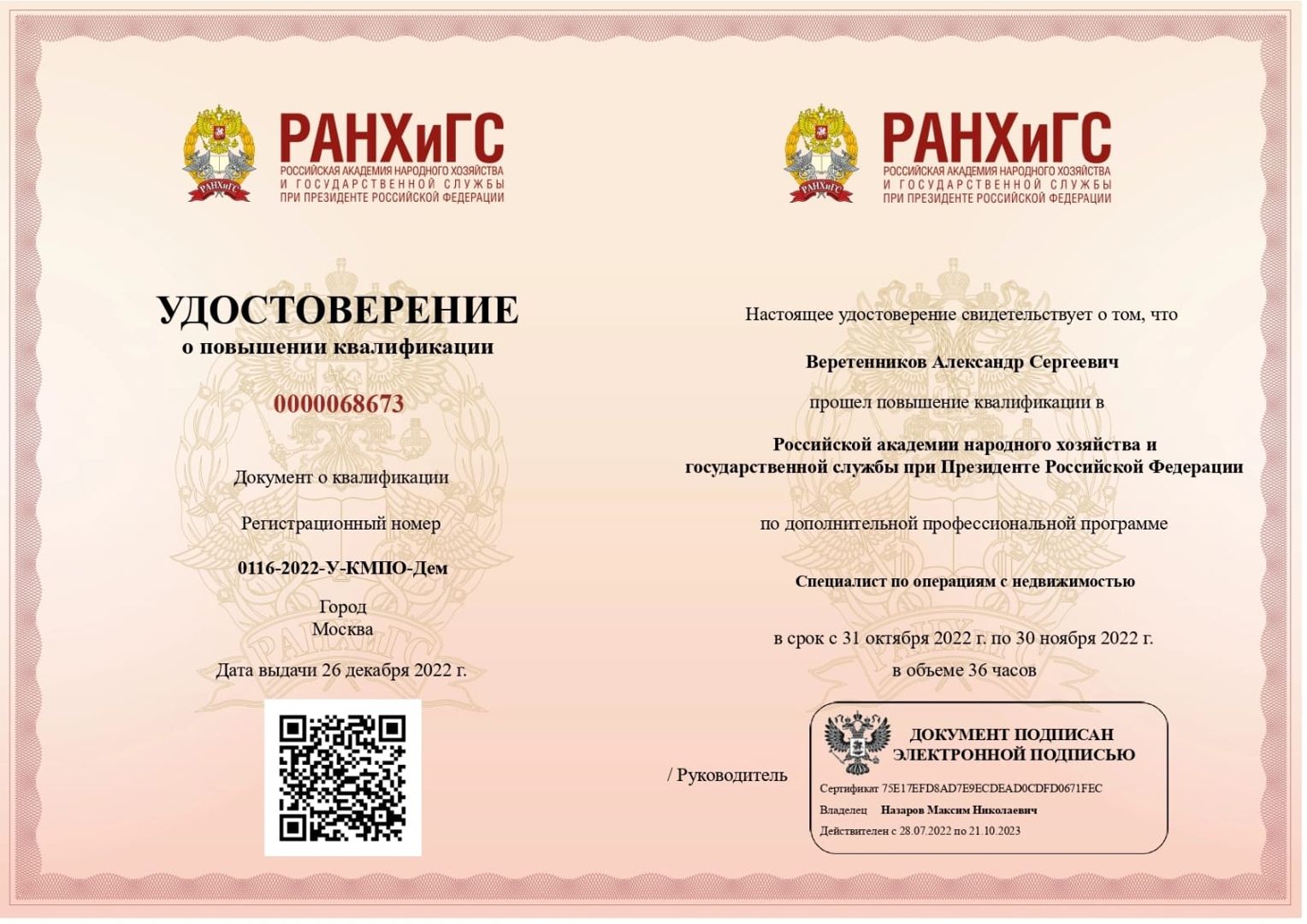 Я имею высшее юридическое образование (БелЮИ МВД России- 2016 год), в 2022 году прошел курс повышения квалификации в РАНХиГС по дополнительной профессиональной программе " Специалист по операциям с недвижимостью", что позволило расширить мои знания в данном направлении. Я могу организовать быструю и безопасную куплю/продажу любой недвижимости, полный цикл сопровождения ипотечных сделок, сделок с...