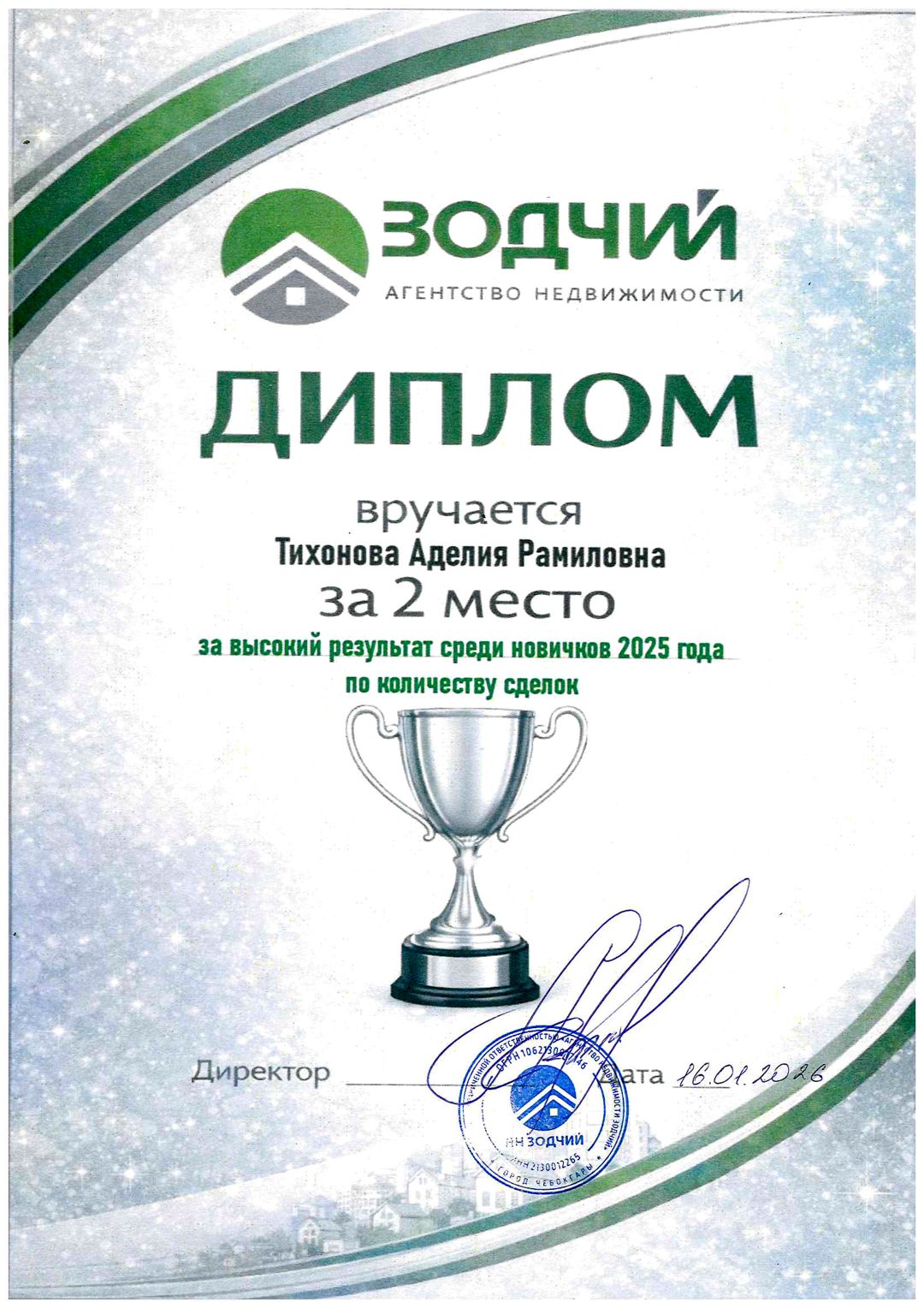 Обратилась к Аделии по рекомендации и положительным отзывам, хочу отметить огромный профессионализм, квартира была продана в кратчайшие сроки, что не смогли в других агентствах недвижимости, буду рекомендовать , желаю профессионального роста и больше благодарных клиентов!