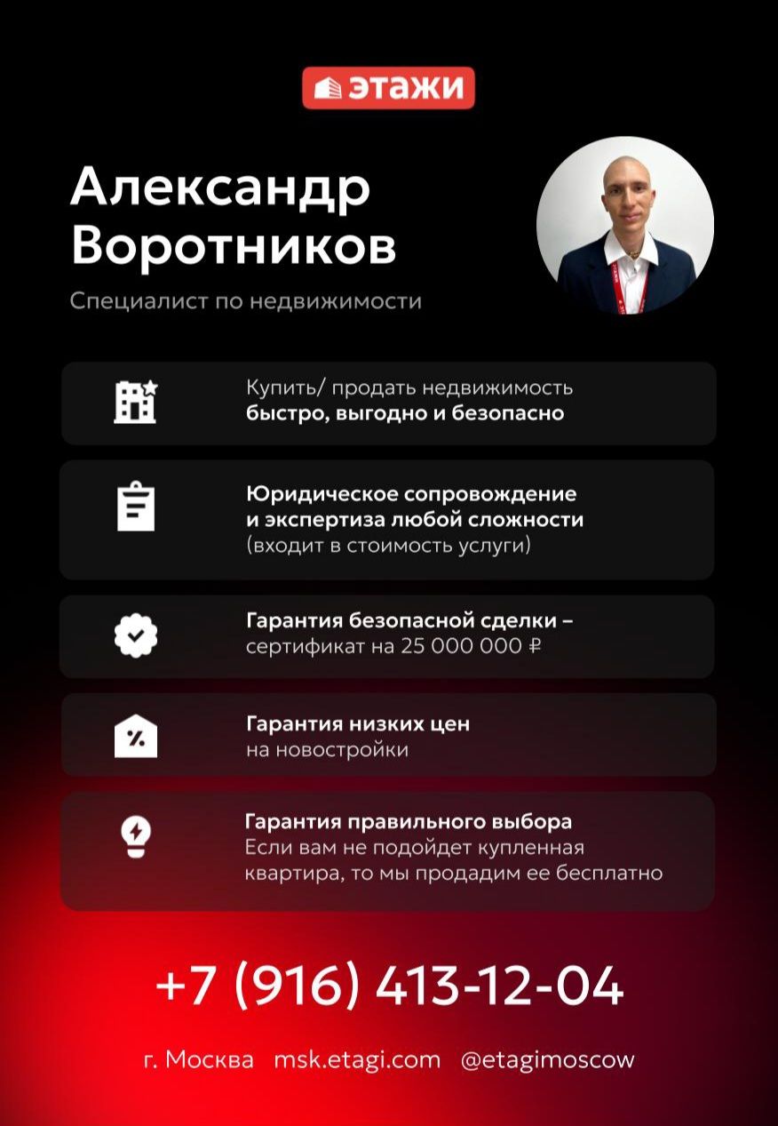 Агент по недвижимости компании «Этажи». Обращайтесь по любым вопросам, касающимся купли/продажи недвижимости – найду самое лучшее решение для Вас!