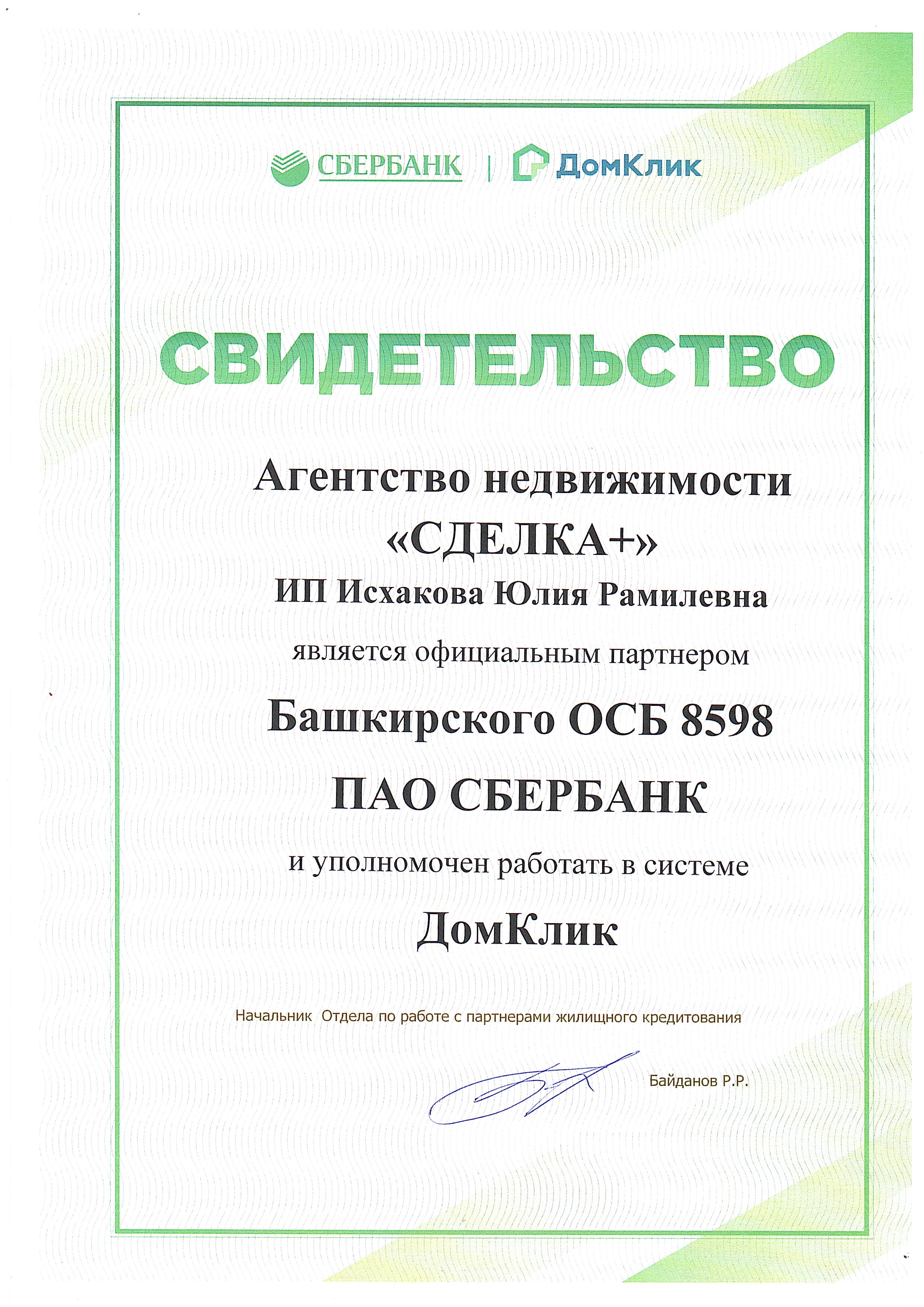 Профессионально провели сделку. Огромное спасибо агентству недвижимости "Сделка +", особенно Исхаковой Юлии Рамилевне, везде помогала, советовала, успокаивала нас, так как очень долго рассматривали ипотеку. Спасибо Вам!