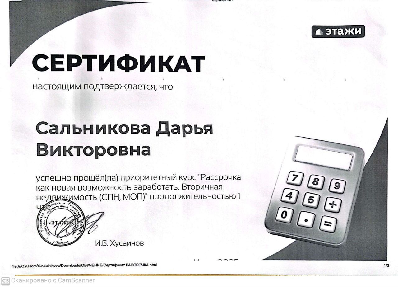 Эксперт по недвижимости компании "ЭТАЖИ" (Москва) Компания "ЭТАЖИ" оказывает полный спектр услуг по продаже и покупке недвижимости на всей России. Мы предоставляем ГАРАНТИИ БЕЗОПАСНОЙ сделки, сопровождение сделки "ПОД КЛЮЧ" от просмотра квартиры до передачи ключей. Бонус от компании, доп скидки на стандартную ставку по ипотеке: - семейная ипотека 6% - IT-ипотека от 6% РАССРОЧКА на вторичное...