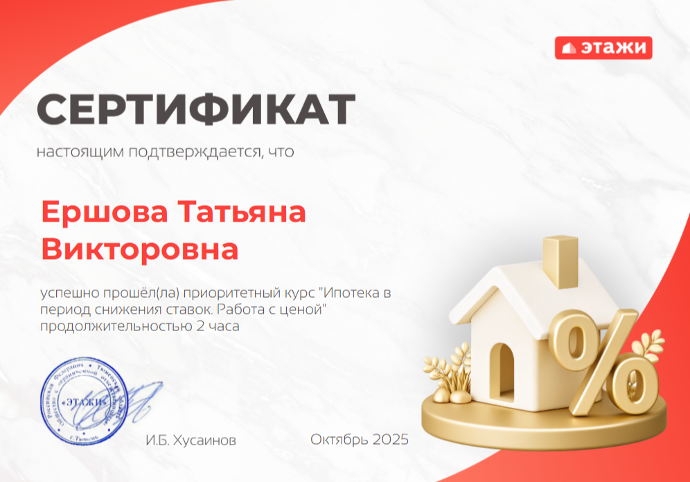 🏆 «Этажи» — лидер рынка недвижимости, признанный экспертами Домклик. Мы сопровождаем сделки полного цикла: от подбора объекта до получения ключей. 🔹 Что мы предлагаем: ✅ Полное сопровождение сделки — берем на себя все этапы, вы контролируете результат ✅ Юридическая безопасность — проверяем каждую сделку, выдаем сертификат безопасности с регламентом действий в кризисных ситуациях ✅ Помощь с...