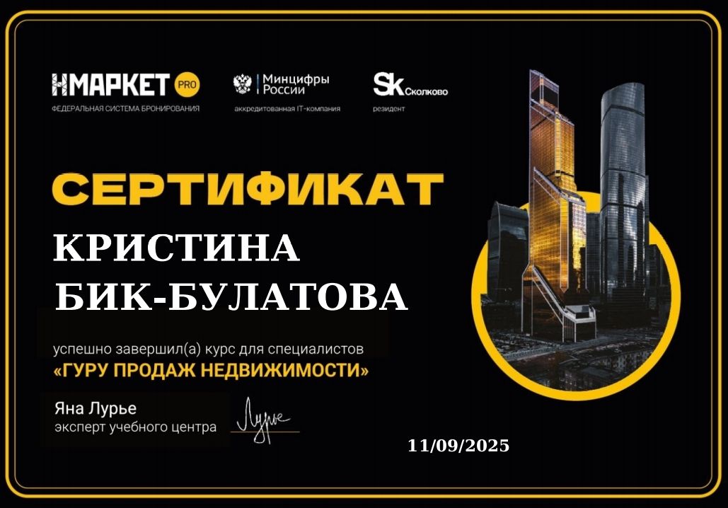 🏡 Бик-Булатова Кристина Георгиевна — эксперт на рынке недвижимости, для которой каждая сделка — это чья-то жизнь, мечта или инвестиция. Помогаю подобрать, продать или арендовать жильё с учётом ваших потребностей, бюджета и планов. Работаю честно, без скрытых условий. Экономлю ваше время, снижаю риски и нахожу лучшие варианты — даже те, что не в рекламе. Ваш комфорт и доверие для меня важнее...