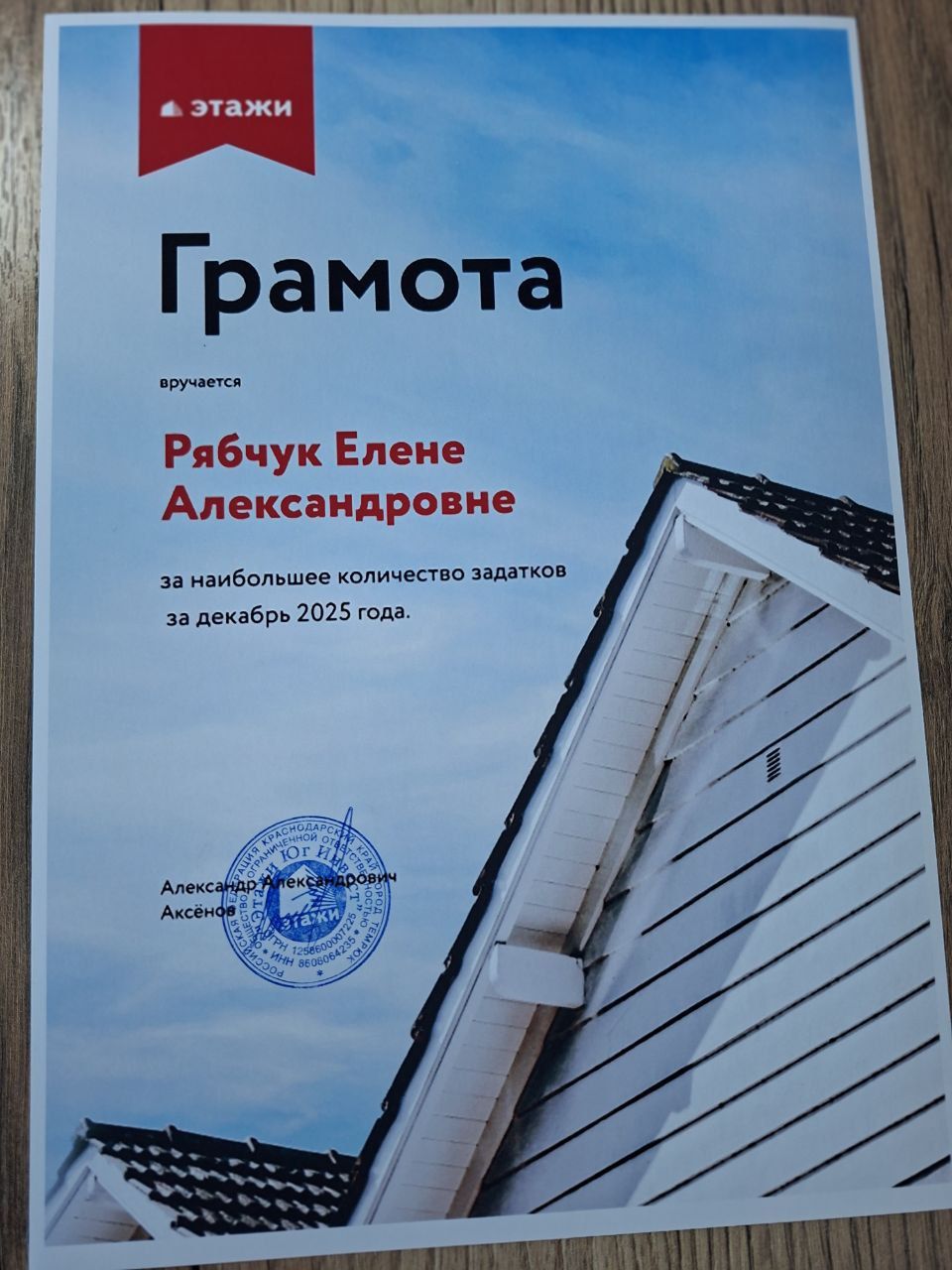 Добрый день! Меня зовут Рябчук Елена Александровна, я Ваш личный агент по недвижимости ООО «Этажи Юг Инвест» «Этажи» — агентство недвижимости №1 по версии ВТБ и Сбербанка. Поможем купить, продать - вторичку, загородную, новостройку и коммерческую недвижимость. С нами легко и безопасно проводить сделки Все услуги в одном месте! Вместе мы подберем подходящий вариант, отправим заявку на ипотеку...