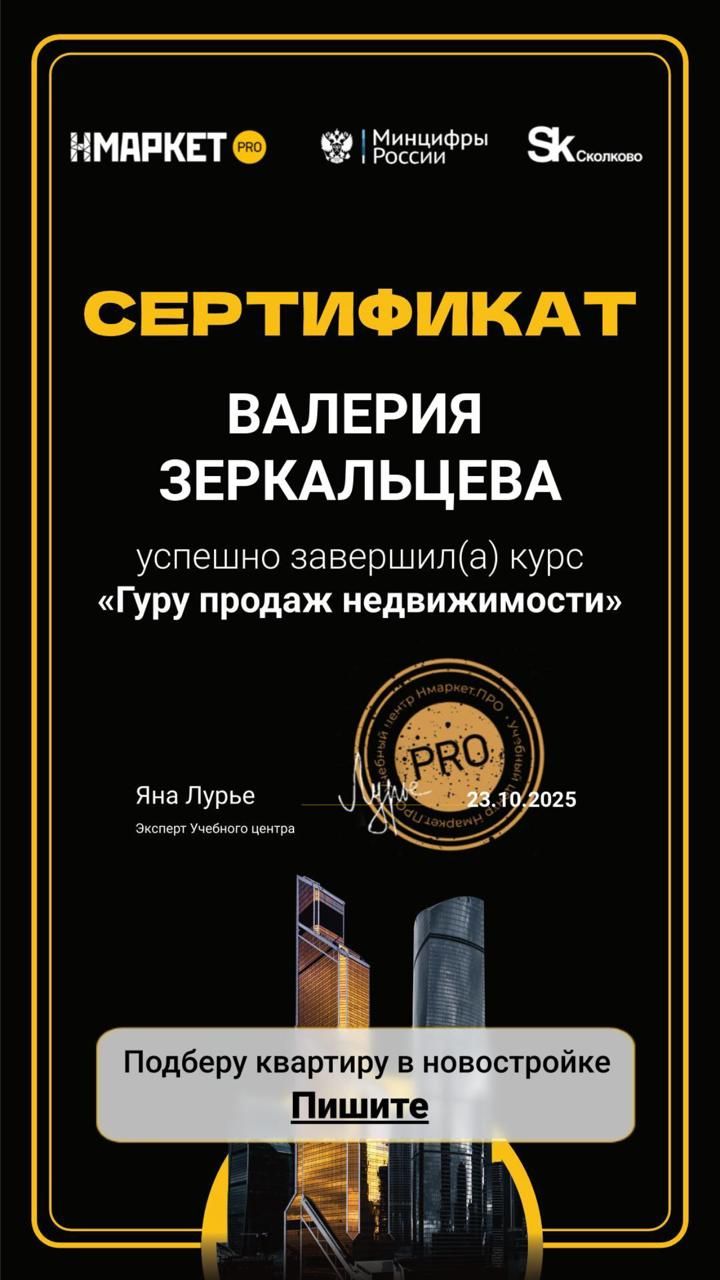 Все прошло отлично и очень быстро. Покупала новостройку в Москве . Очень много вариантов предлагала, под мои условия. На каждом шаге Валерия мне помогала, можно сказать все делала за меня. Сделка прошла очень быстро. Квартира уже моя)