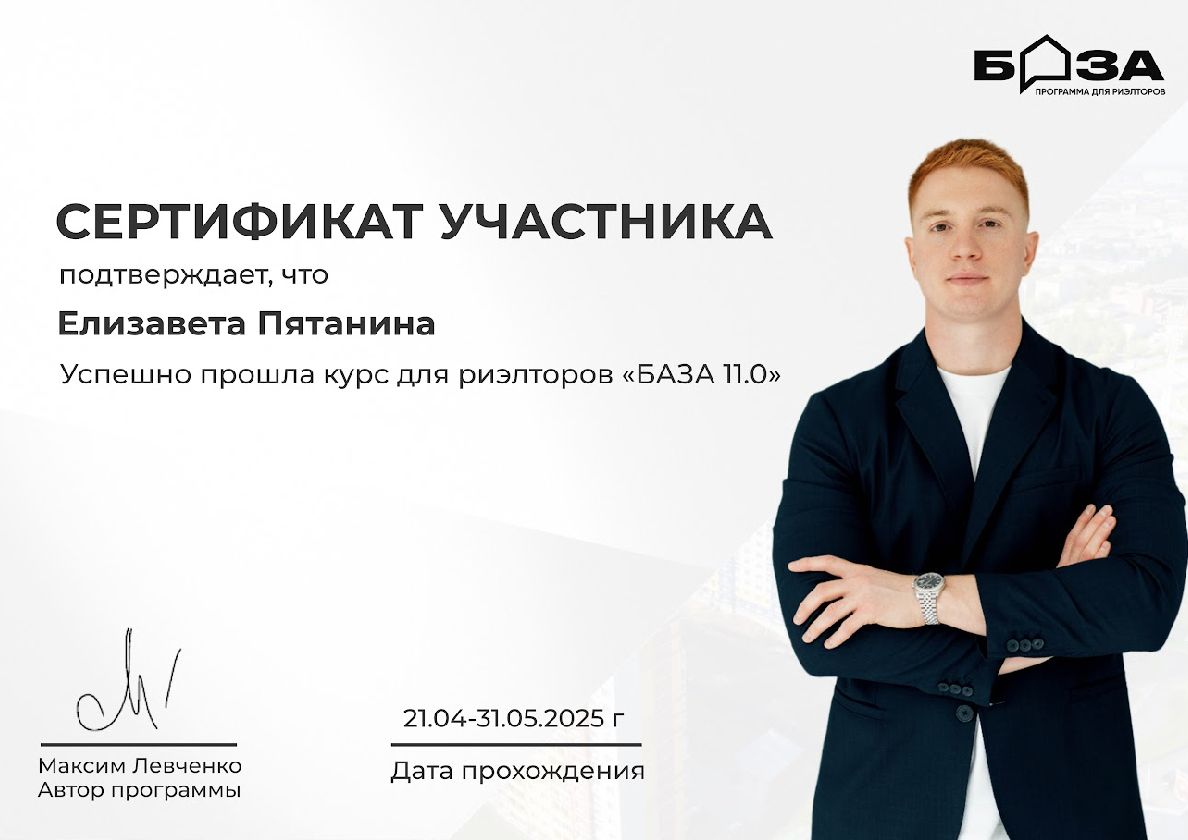 Елизавета ПятанинаРиелтор ответил 26 декабря 2025Олег, благодарю за высокую оценку моей работы.