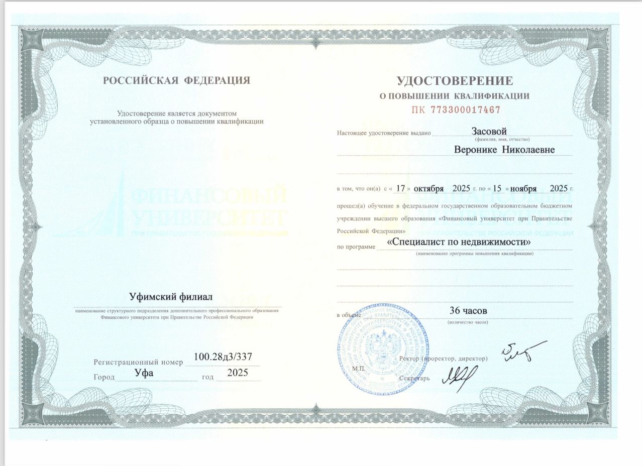 Выражаю благодарность риелтору Засовой Веронике. Быстро подобрала недвижимость по запросу. Сделка прошла онлайн. Всегда на связи 24/7. Рекомендую