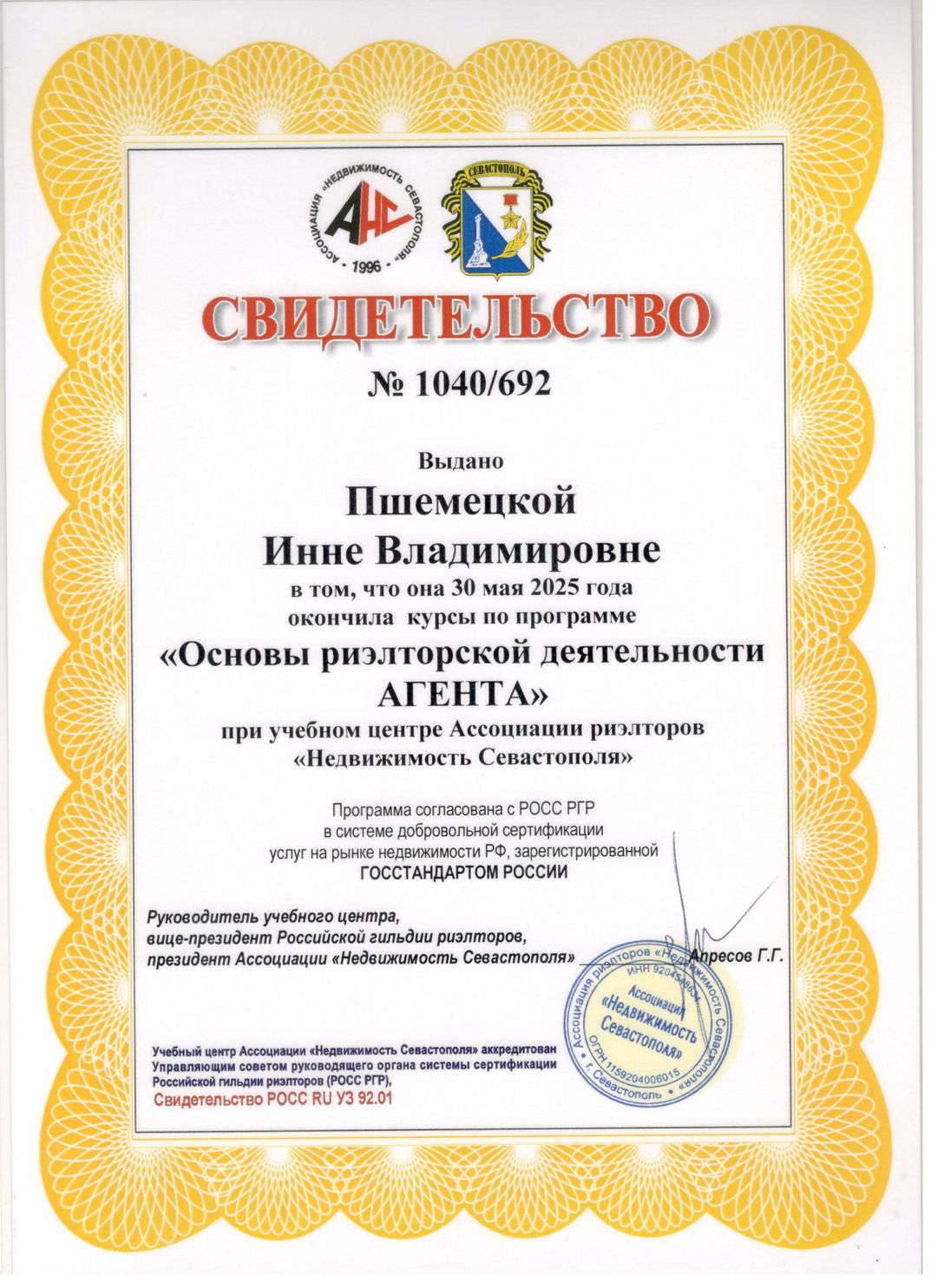 Сертифицированный агент по недвижимости, член Всероссийской гильдии риэлторов и ежегодный участник Международного жилищного конгресса. Профессионально сопровождаю сделки с недвижимостью на всех этапах — от консультации и подбора объекта до полного оформления и завершения сделки. Работаю с покупкой и продажей квартир, домов на вторичном рынке и в новостройках, ипотечными и альтернативными...
