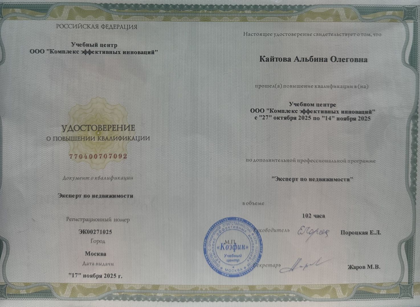 Хочу выразить свою искреннюю и безграничную благодарность Кайтовой Альбине Олеговне , за ее выдающийся профессионализм и невероятную человечность. Она не просто риэлтор, а настоящий волшебник в сфере недвижимости!С ней очень приятно работать,всегда на связи и всё объясняет ,оперативно оценила нашу квартиру и так же оперативно продала ,причем очень хорошим людям. Большое спасибо за помощь и...