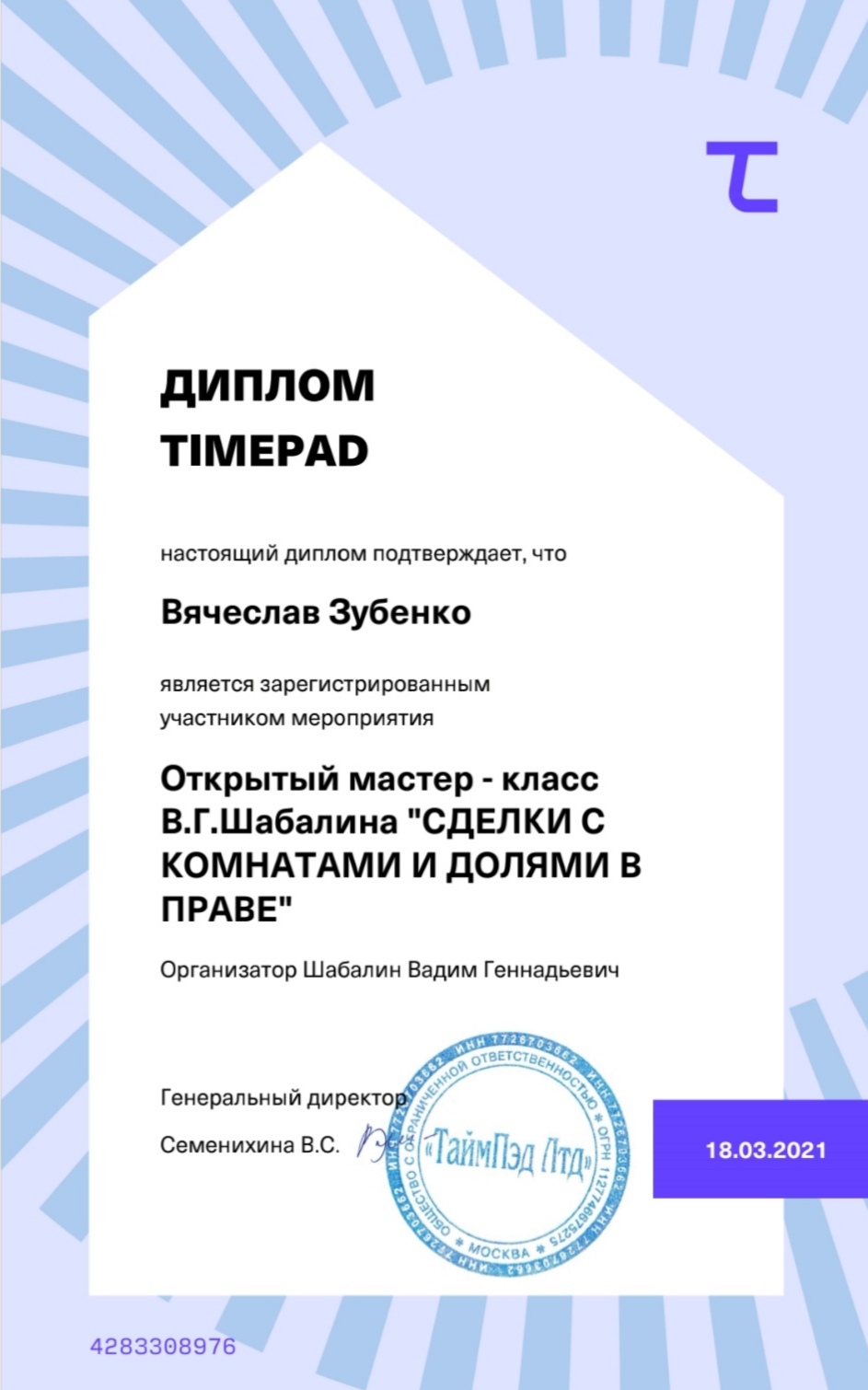 Вячеслав очень помог с покупкой квартиры: помогал выбрать, подготовить документы - чувствовал себя уверено, что мне помогает профессионал. Все четко - всегда можно было обратиться по любому даже самому глупому вопросов. Спасибо!