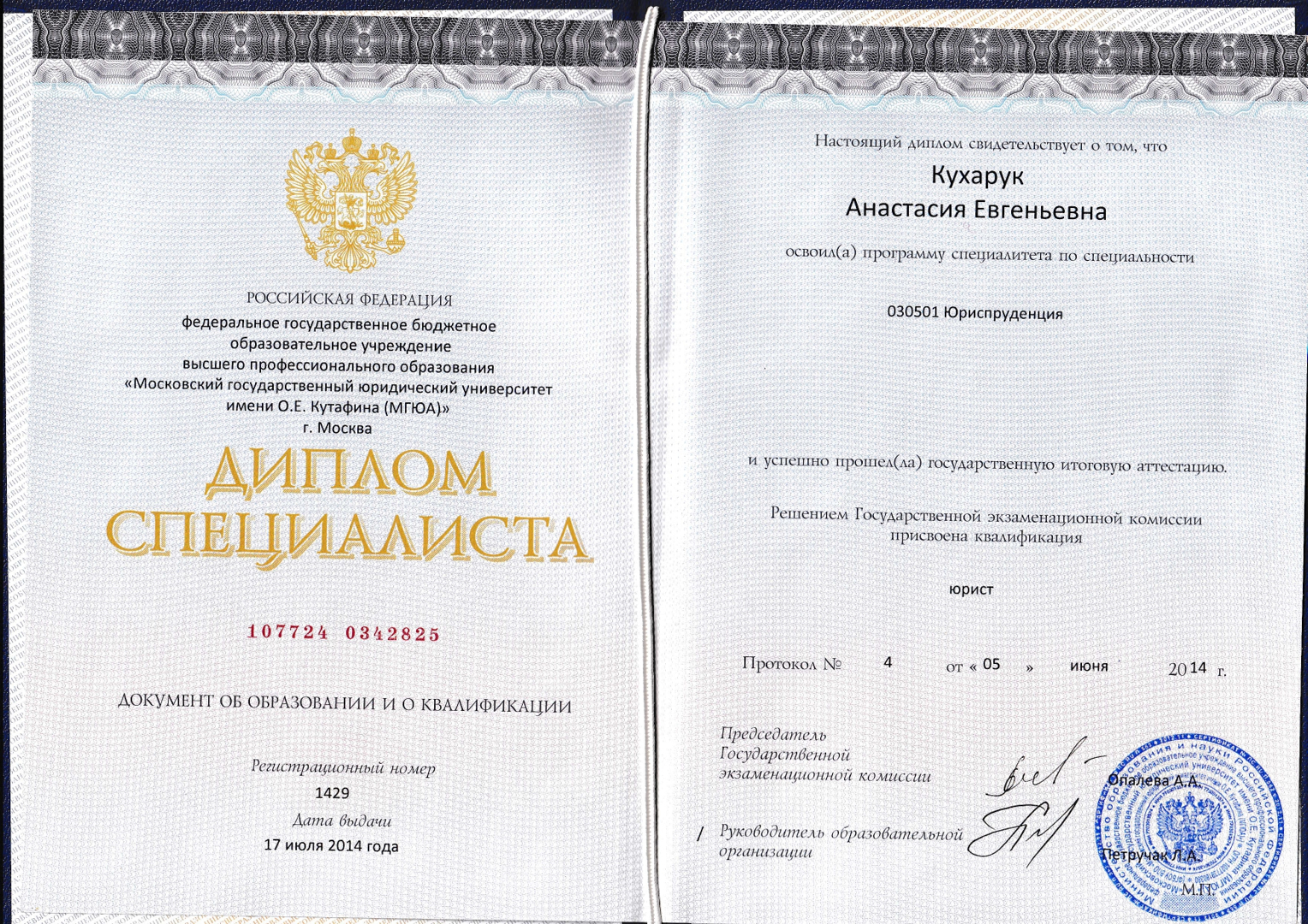 2009-2014 Институт Прокуратуры МГЮУ (МГЮА им. О.Е.Кутафина). 2015-2018 государственный регистратор Росреестра по МО в сфере регистрации прав, сделок и ограничений. 2018-2025 государственный регистратор Росреестра по МО в сфере государственного кадастрового учета, проверки межевых, технических планов.