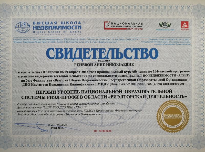 Опыт работы на рынке недвижимости с 2011 года. Сопровождение сделок с недвижимостью любой сложности. Бесплатные консультации по вопросам покупки и продажи жилья на вторичном рынке и рынке новостроек.