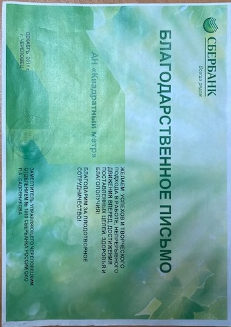 Огромное СПАСИБО за профессионализм, отзывчивость, быстроту решения любых проблем АН "Квадратный Метр"!!! Всё на высшем уровне!!!