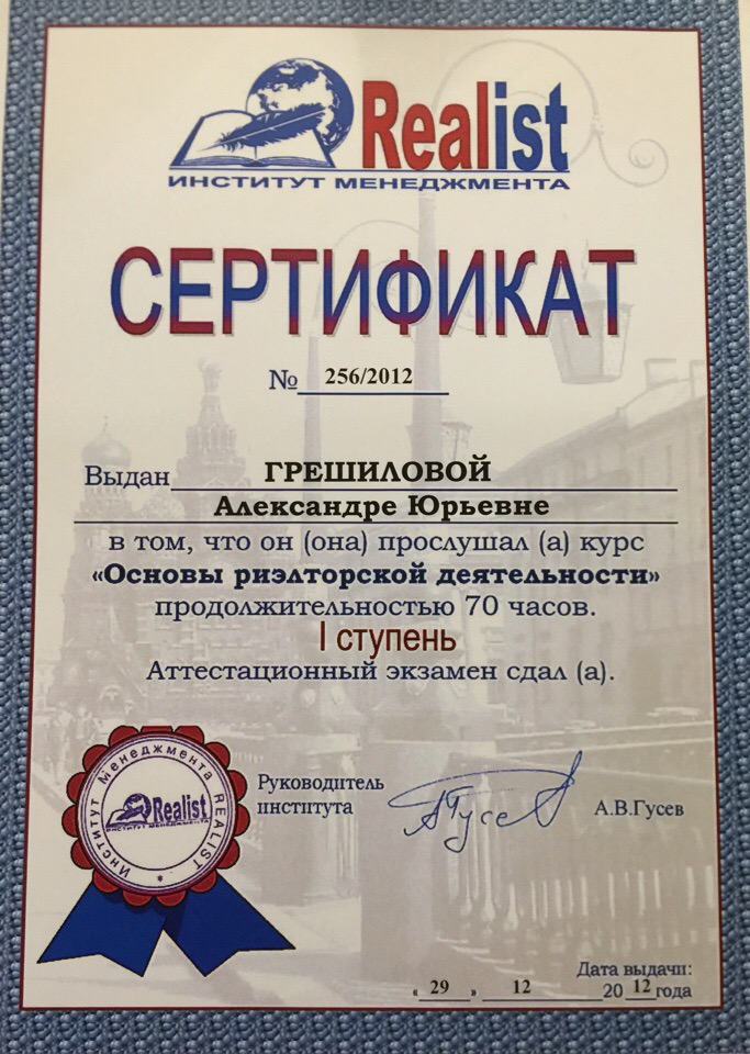 Приветствую Вас, меня зовут Александра Юрьевна Грешилова - риэлтор с юридическим образованием. Основатель и руководитель агентства недвижимости «City Expert» в г.Санкт-Петербурге. Входит в Ассоциацию Риэлторов Санкт-Петербурга. Опыт работы с 2012 года. Более 800 проведенных сделок. 🏰Помогу выгодно продать, купить, обменять недвижимость 🤵🏻♀️Берусь за сложные ситуации при продаже: объекты...