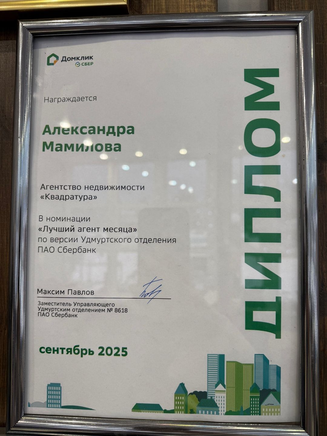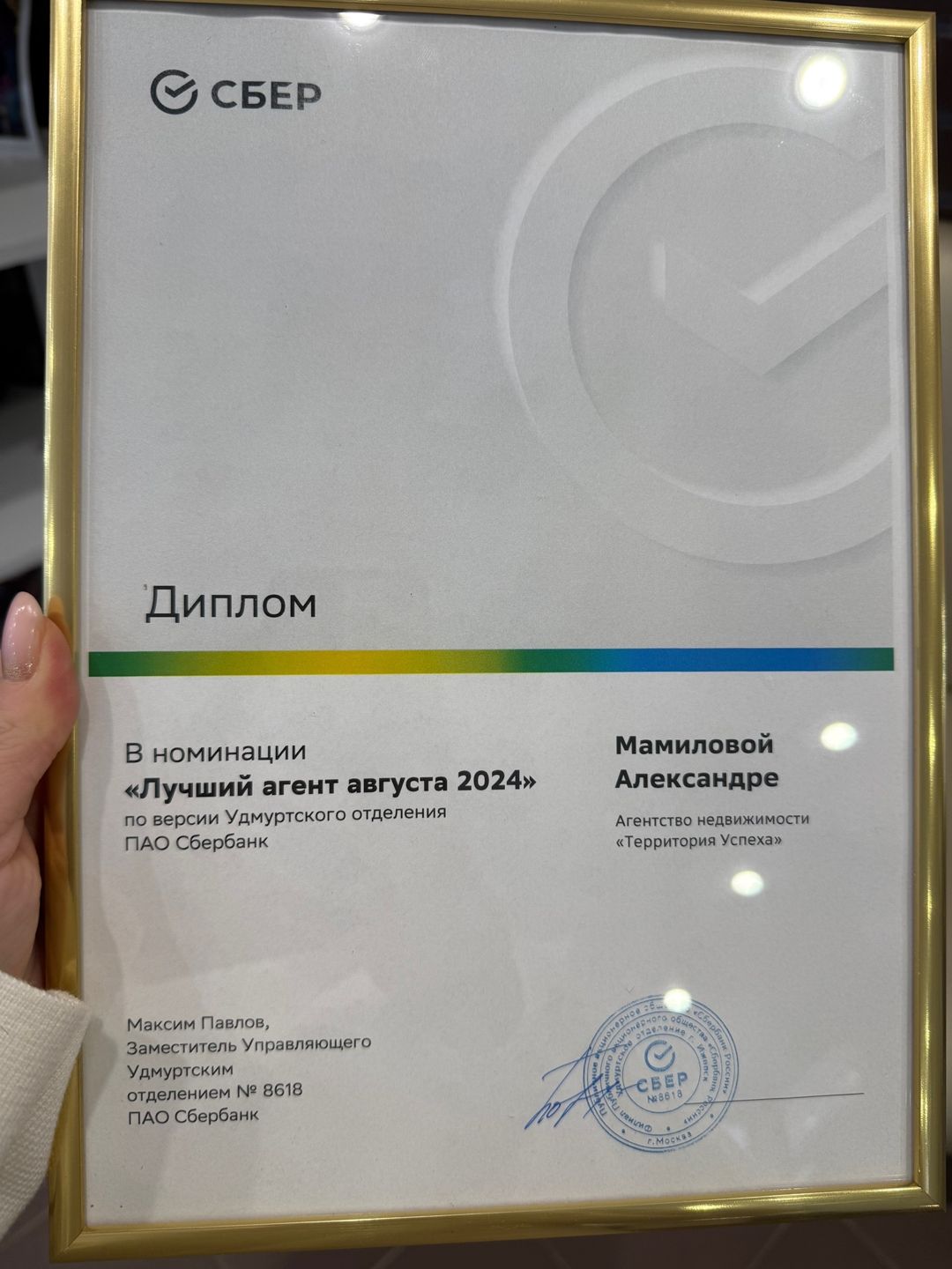 Большое спасибо Мамиловой Александре за сопровождение сделки, всегда поможет в любом вопросе и профессионал своего дела