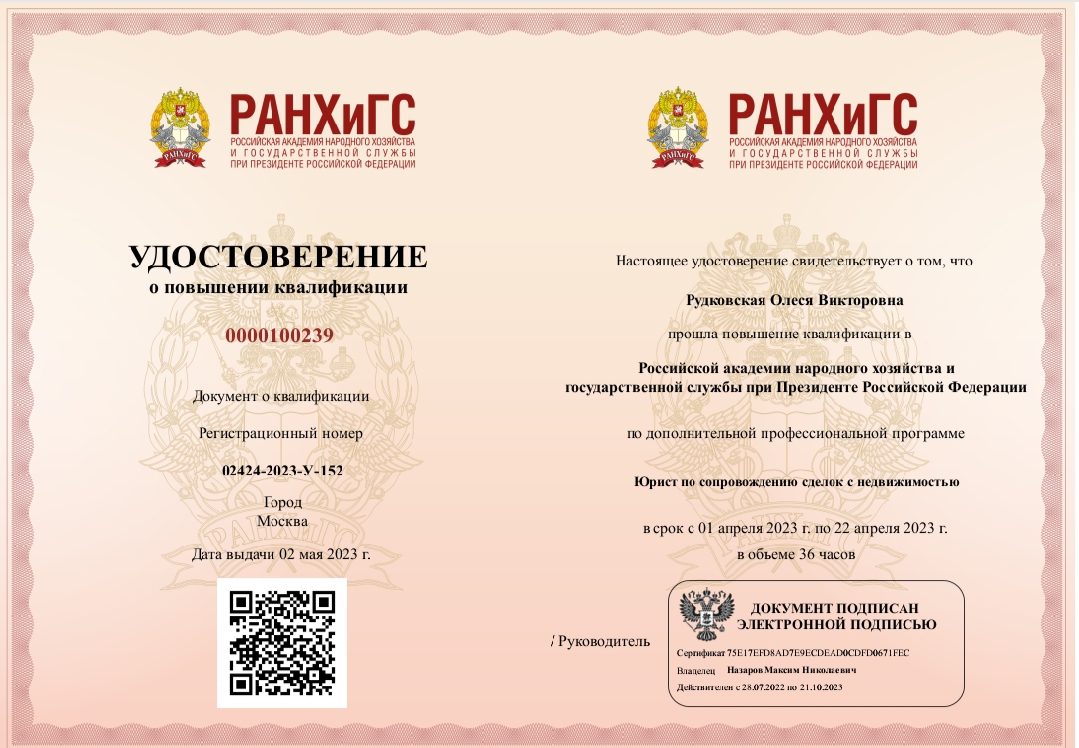 Огромная благодарность Олесе Рудуовской. С ней осуществили сложную сделку: продажа дома в ипотеке и покупка нового. Всегда была на связи, консультировала даже по малейшим моментам. Могу точно сказать, что это квалифицированный специалист, профессионал! Спасибо)