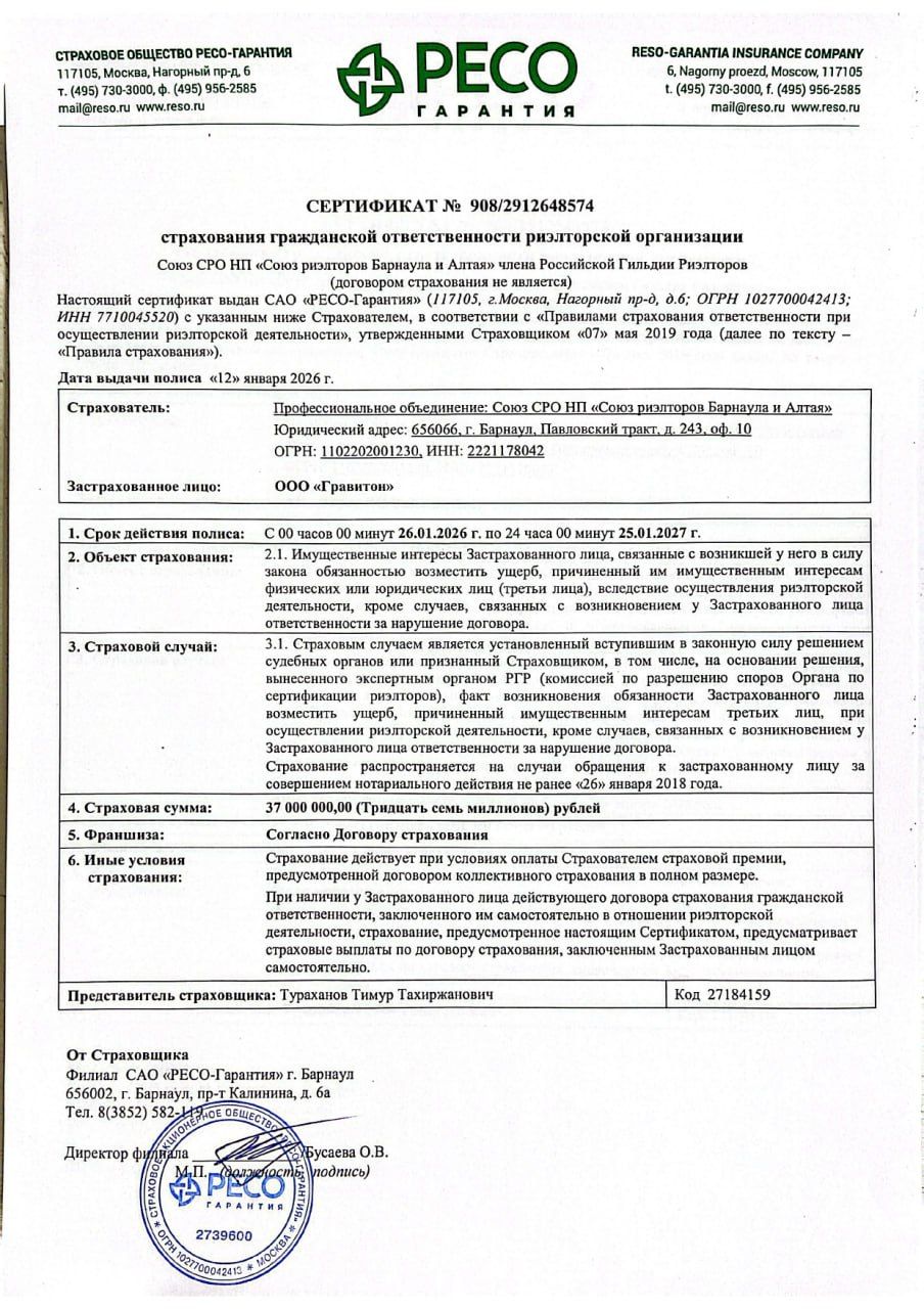 Агентство недвижимости «Гравитон» основано в 2000 году. Профессиональная деятельность сертифицирована и застрахована. Генеральный директор компании Ирина Игоревна Снитко. Компания Гравитон внесена в Единый реестр сертифицированных компаний и аттестованных специалистов рынка недвижимости РФ и является действительным членом Российской Гильдии Риэлторов и Союза Риэлторов Барнаула и Алтая. За...