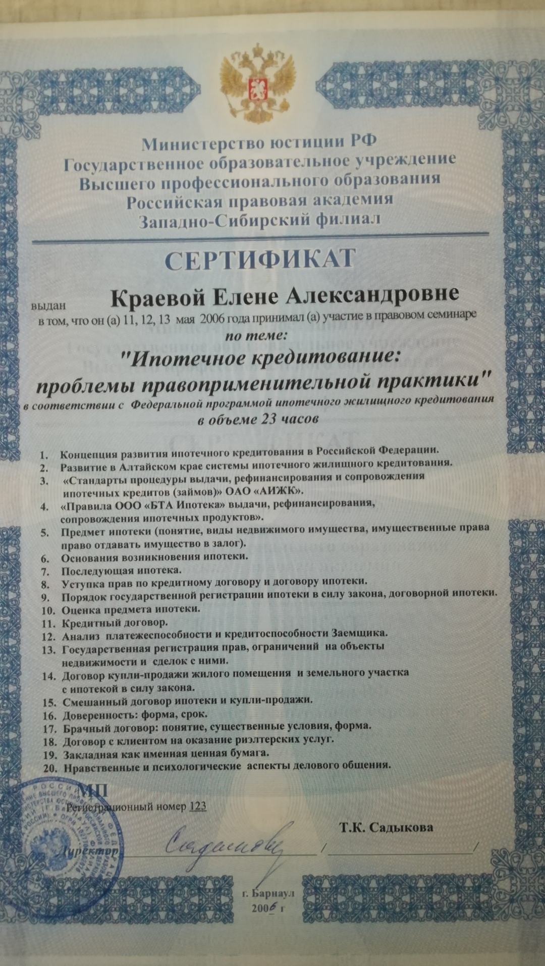 Опыт работы на рынке недвижимости более 15 лет. Покупка-продажа объектов недвижимости, помощь в оформлении ипотеки, оформление приватизации, оформление наследства, работа с сертификатами(мат.капитал, военный, жилищный гос.сертификат, молодая семья, и др.), Узаконение перепланировок, самовольных строений, Оформление земельных участков, Подборка новостроек(квартиры, дома)
