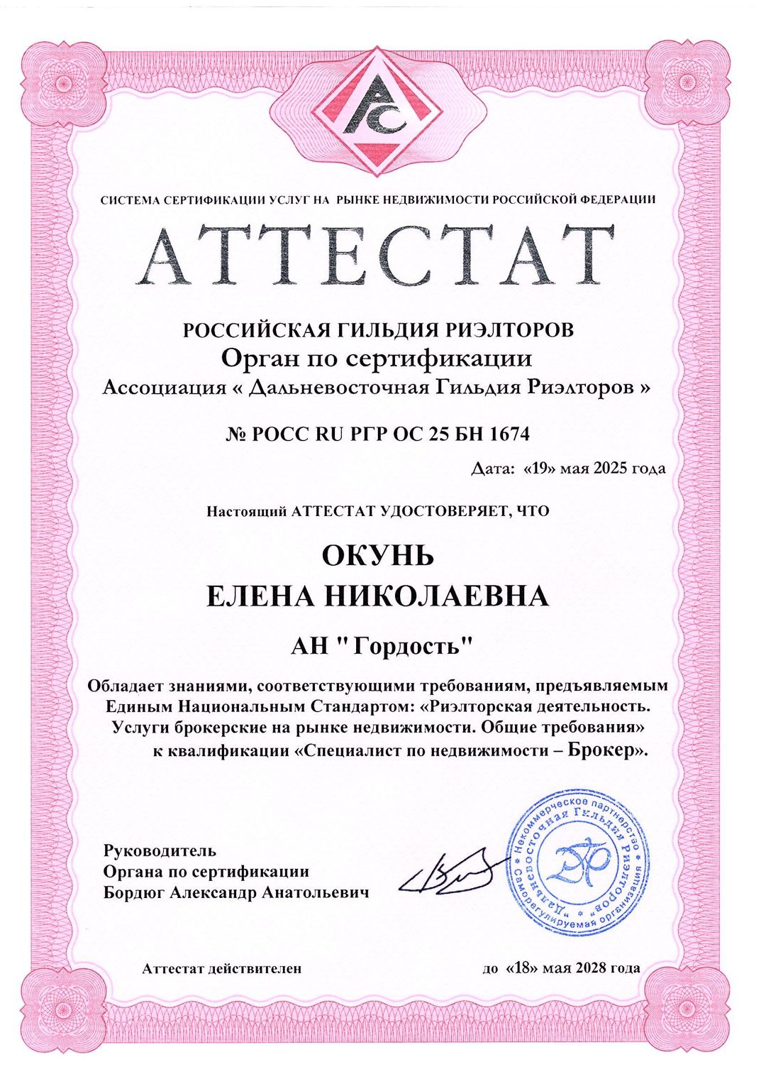 Выражаю огромную благодарность риэлтору Окунь Елену! Благодаря ее хорошим знаниям рынка недвижимости и тенденций его развития в будущем, а также действующего законодательства в сфере недвижимости, ее оперативному подходу в организации подбора жилья и личной дисциплинированности, сделка купли-продажи квартиры состоялась, а о ее юридической чистоте не приходится ломать голову! Еще раз благодарю!...