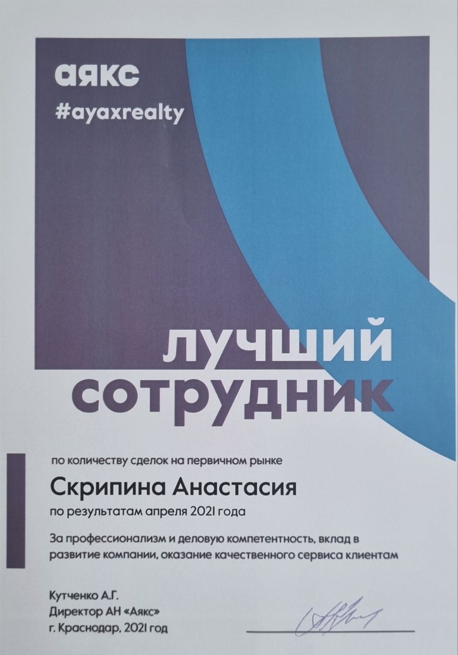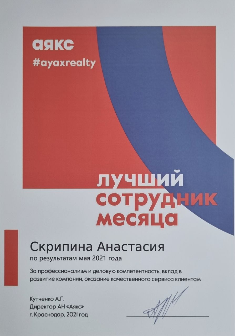 Хочу выразить огромную благодарность Анастасии за безупречно проведённую сделку по покупке недвижимости! Особенно ценно, что, находясь в Самаре, мы смогли приобрести квартиру в Москве благодаря профессиональному подходу и современным технологиям. Процесс оформления прошёл максимально комфортно и удобно в онлайн-формате. Анастасия всегда была на связи, оперативно отвечала на все вопросы и помогала...