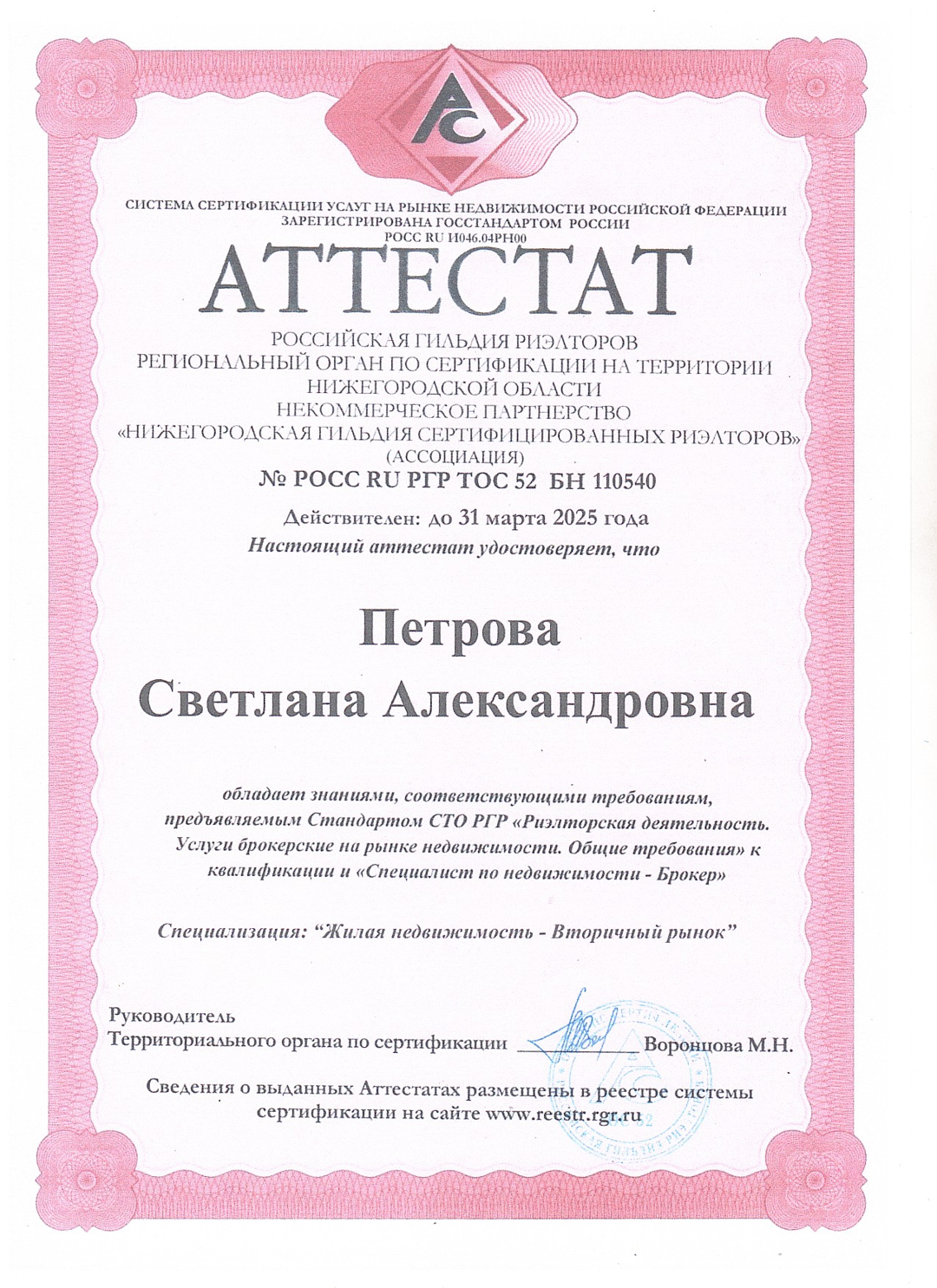 Светлана отличный риелтор!!! Помогла нам быстро оформить ипотеку. Подготовка к сделке прошла просто идеально! Всем советую Светлану!