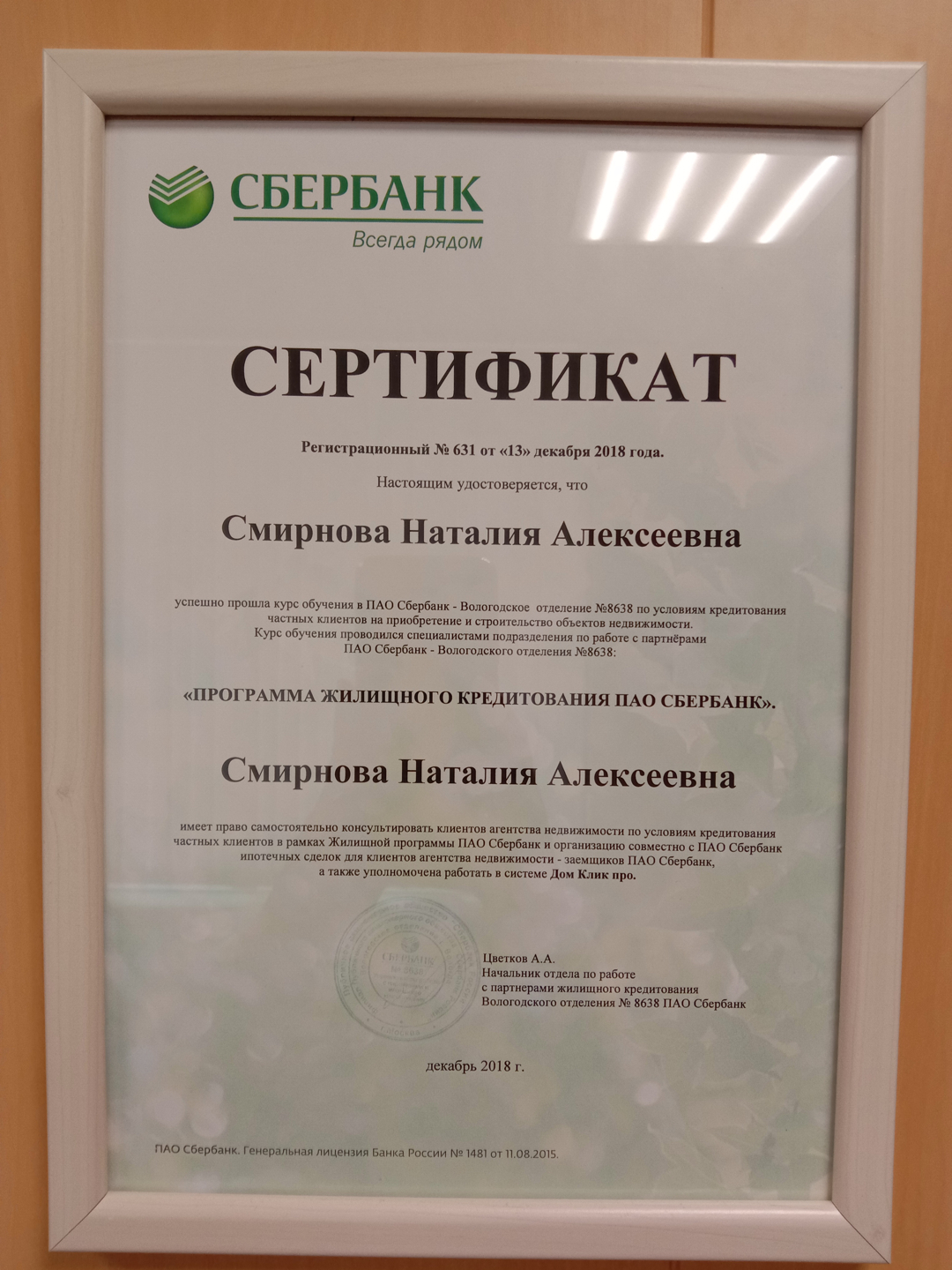 Хочу выразить огромную благодарность риэлтору Смирновой Натальи. Она грамотный специалист, была проведена большая работа - консультирование по всем интересующим вопросам, оформление документов, сопровождение сделки от "А до Я". Если будет необходимость в покупке или продажи недвижимости ,обязательно обращусь к Натальи снова.Так же буду рекомендовать знакомым и друзьям.