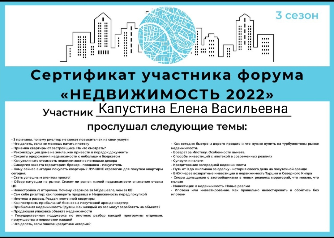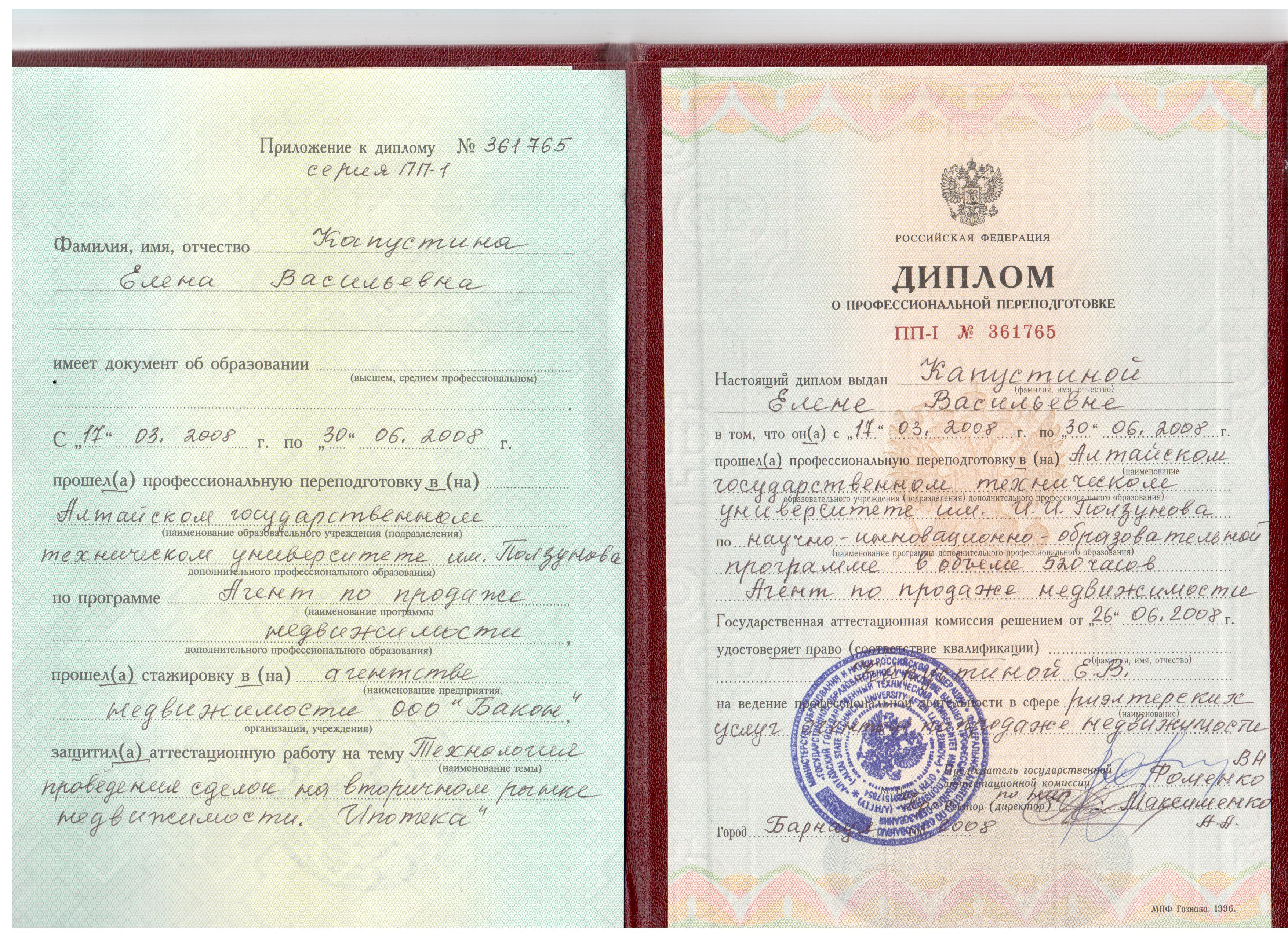 Хотим выразить искреннюю благодарность Капустиной Елене за проделанную работу!!! Честная работа, позитивный настрой, четкий план действий, максимальный учет пожеланий, умение просто и доходчиво объяснить сложные тонкости нашего законодательства. Две успешно проведенные сделки, все грамотно, четко и оперативно, а главное честно! Рекомендуем всем! Качество работы - по высшему разряду! Побольше бы...