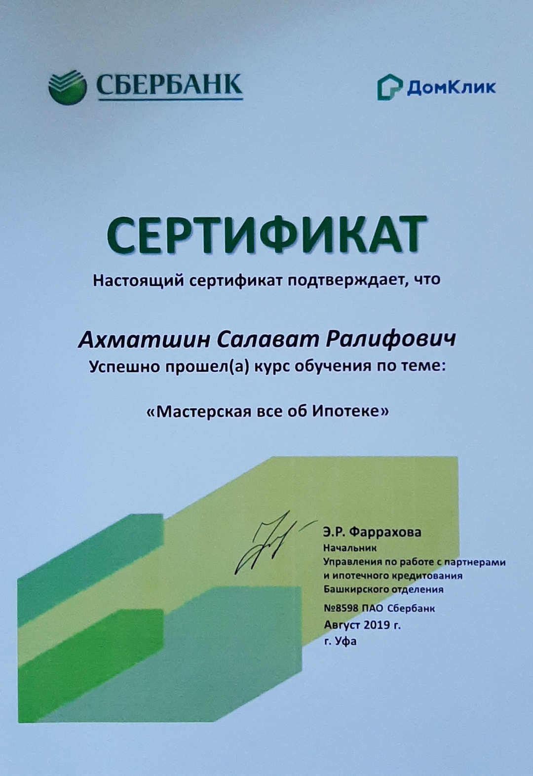 Хочу поблагодарить Салавата Ралифовича за проделанную работу в оформлении покупки квартиры. Грамотный специалист, подробно объяснил все детали нашей сделки, все прошло легко и быстро! Огромное спасибо, желаем дальнейших успехов в работе!